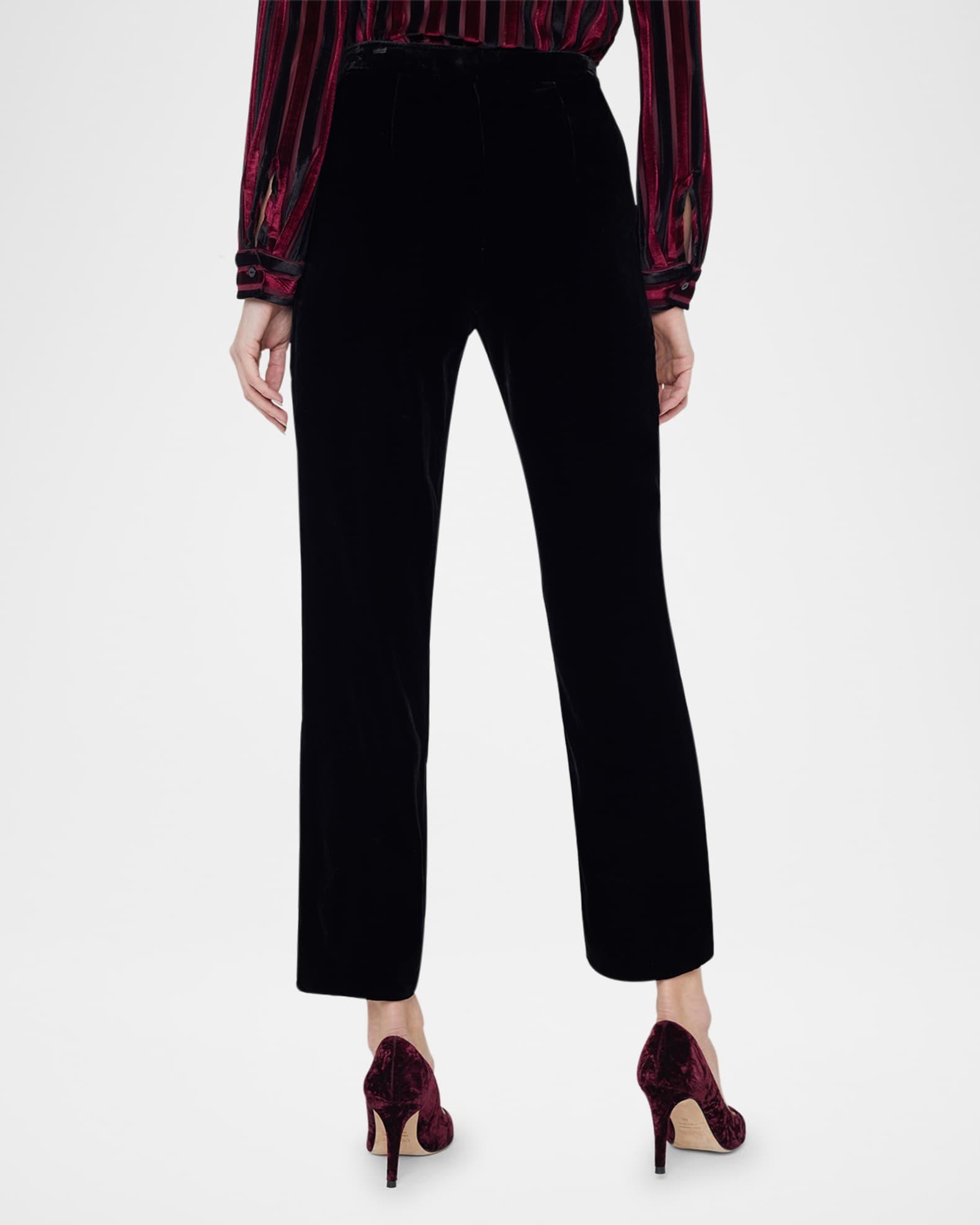 L'Agence "Rebel" velvet trousers Mid rise sits high on hip Slanted side pockets Cropped at the ankle Straight legs Concealed hook/zip fly Viscose/silk Dry clean Imported Model is 5'10"/177cm.