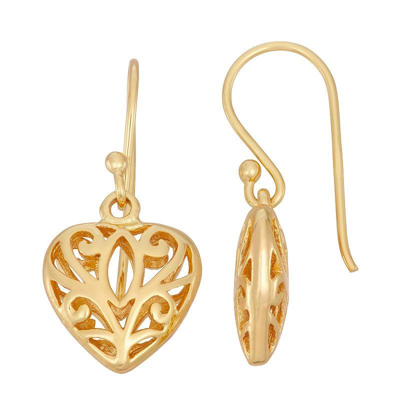 Sweet and sassy, these Primavera filigree heart earrings will quickly become your favorites. Sweet and sassy, these Primavera filigree heart earrings will quickly become your favorites. Nickel free Metal: sterling silver Backings: fishhook Plating: 24k gold Finish: polished Length: 25 mm Size: One Size. Color: Yellow. Gender: female. Age Group: adult.