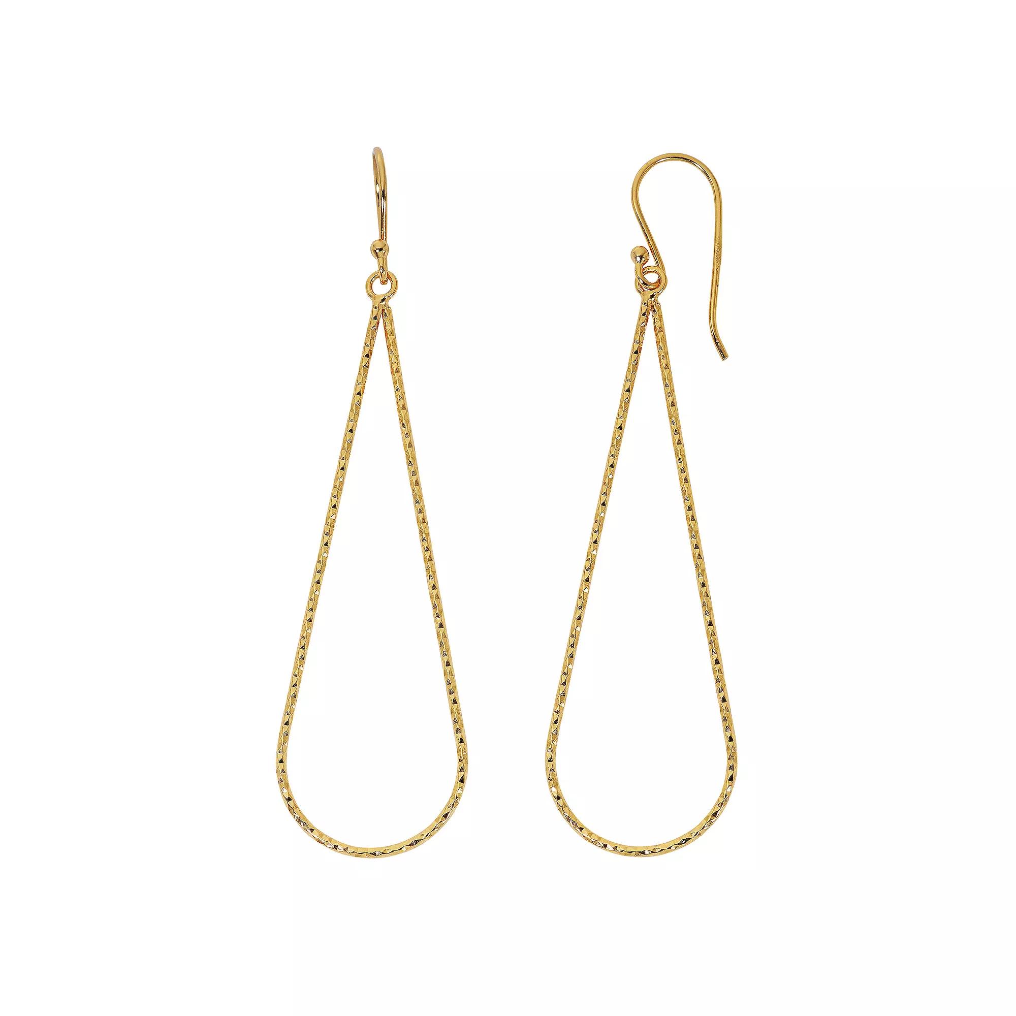 Finish off your ensemble in chic minimalist style with these eye-catching 24k gold plated Primavera textured wire teardrop drop earrings. Finish off your ensemble in chic minimalist style with these eye-catching 24k gold plated Primavera textured wire teardrop drop earrings. Length: 2.5 in. Backings: fishhook Nickel free Metal: sterling silver Plating: 24k gold Finish: diamond-cut Packaging: decorative card Size: One Size. Gender: female. Age Group: adult. Material: Gold Over Sterling.