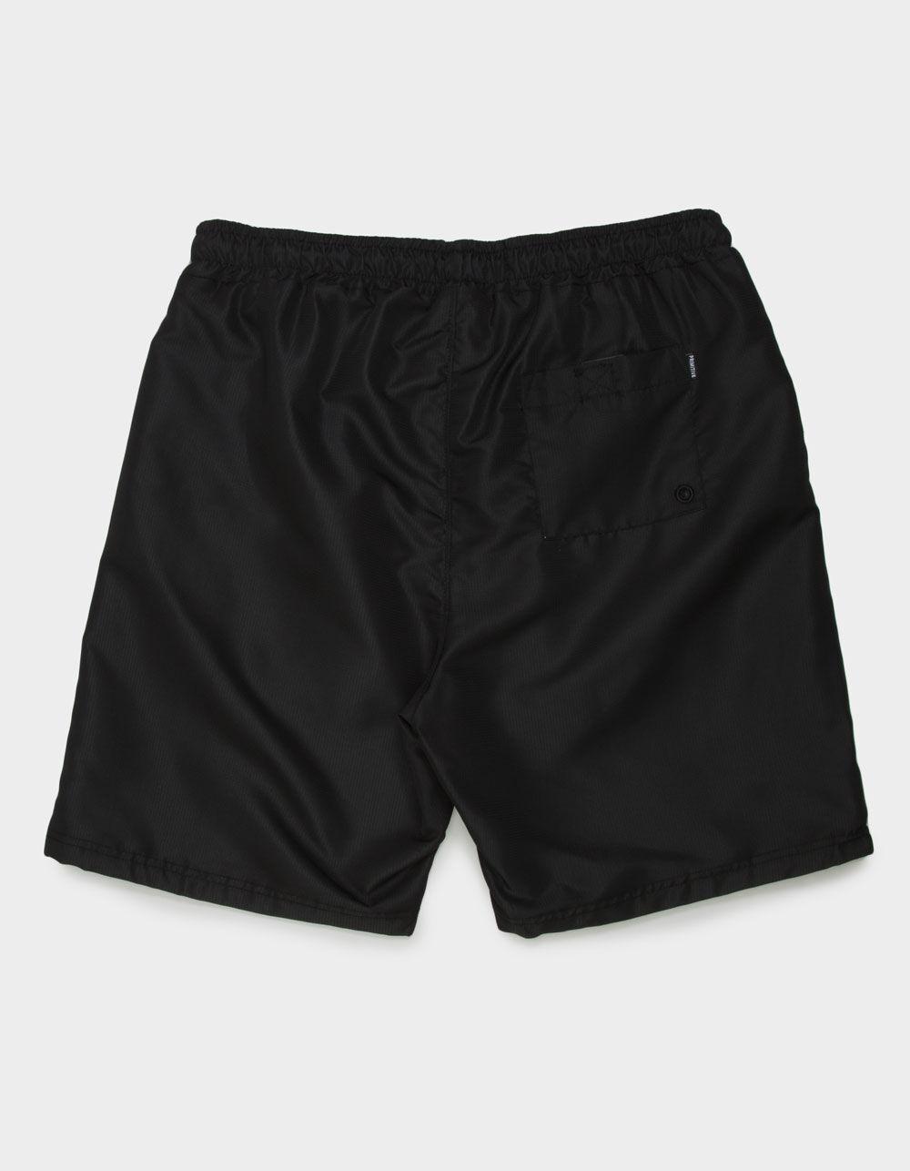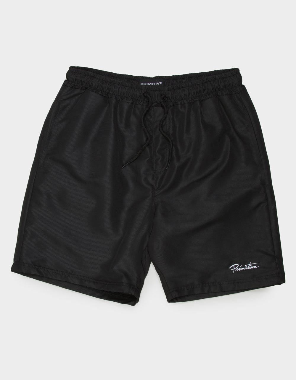 Primitive Mini Nuevo Mens Boardshorts. Elastic waistband with adjustable drawstring. Side seam pockets. Back right pocket with hook-and-loop closure. Woven label at back pocket. Primitive embroidery at lower left leg. Mesh lining. Approximate inseam: 7". 100% Nylon. Lining: 100% Polyester. Machine wash. Imported.