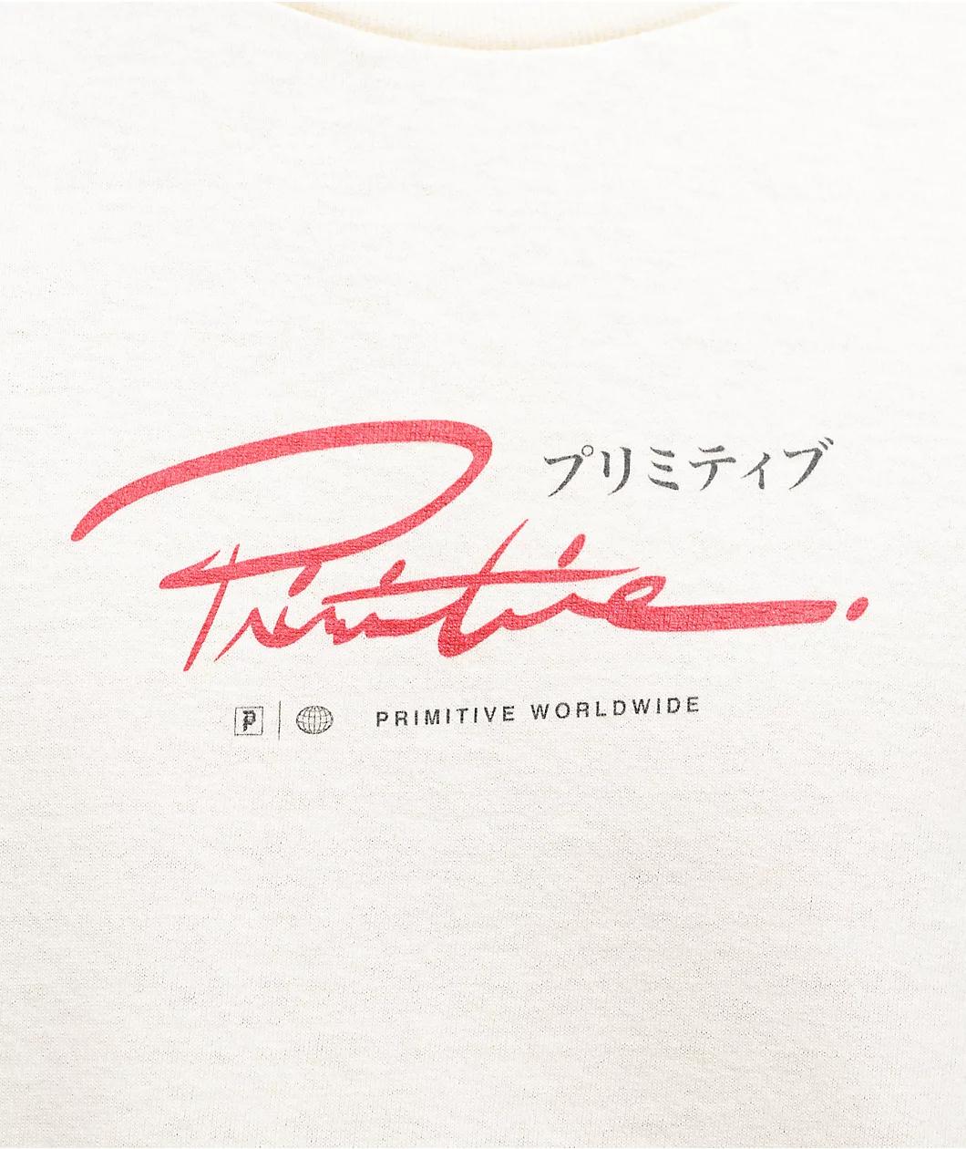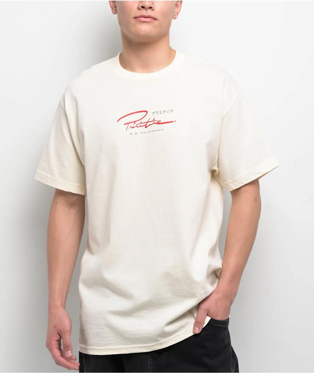 Primitive presents the Money Tree t-shirt in an off-white cream colorway. Perfect for any hustlers, the tee features a back graphic of a bonsai tree growing cash. English and Japanese branding decorates the chest and back for a modern streetwear look
