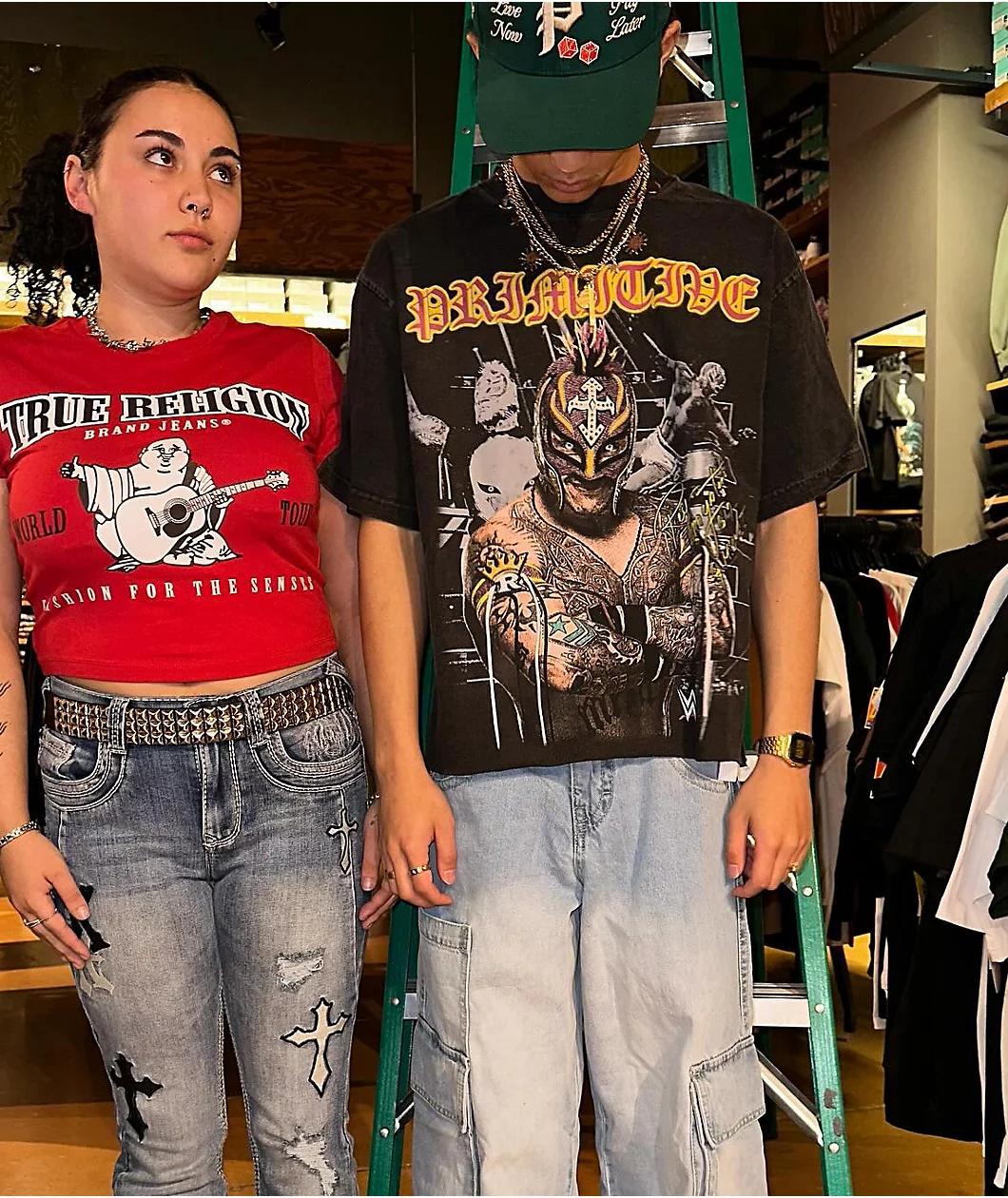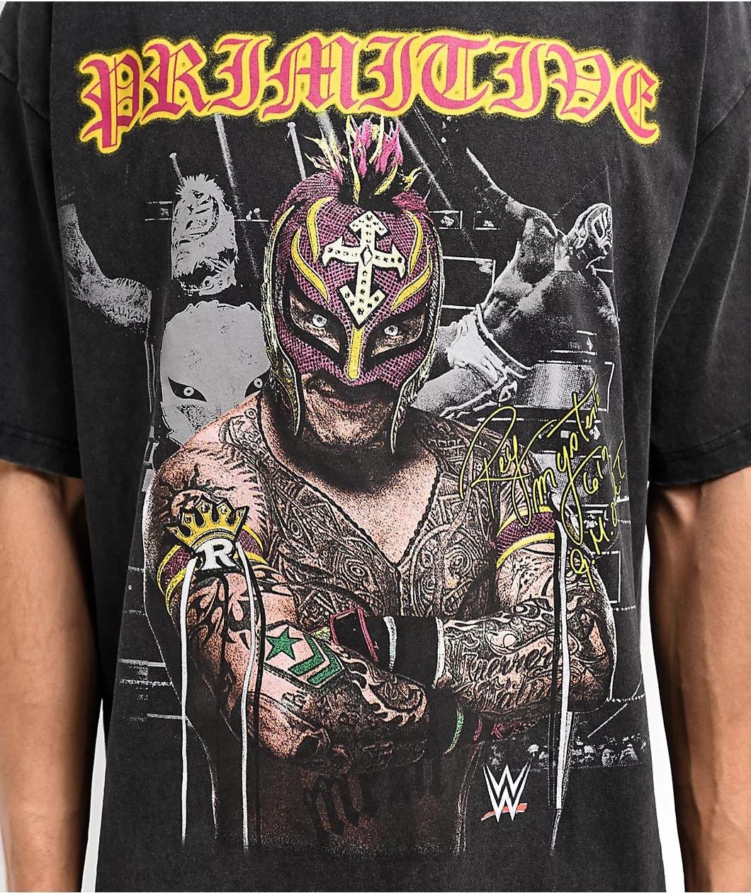 Featuring the iconic masked wrestler, the Rey Mysterio t-shirt from the WWE x Primitive collab comes treated with a black vintage wash - resulting in a broken-in look and feel. Images from his illustrious pro wrestling career are pictured on the fron