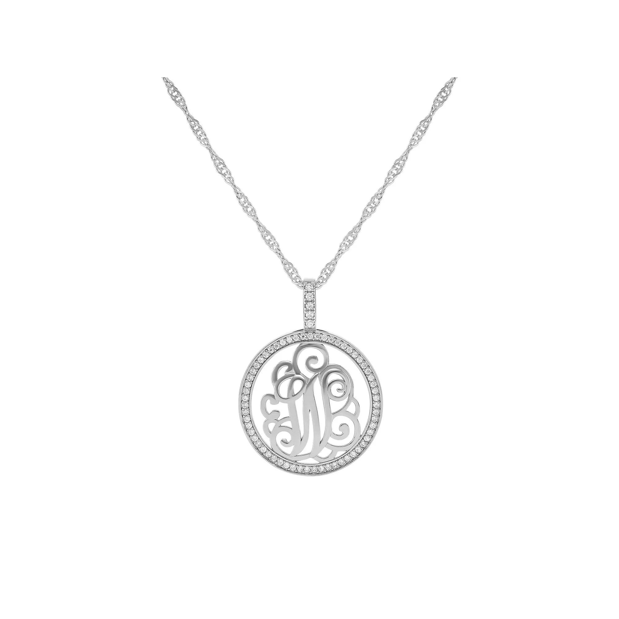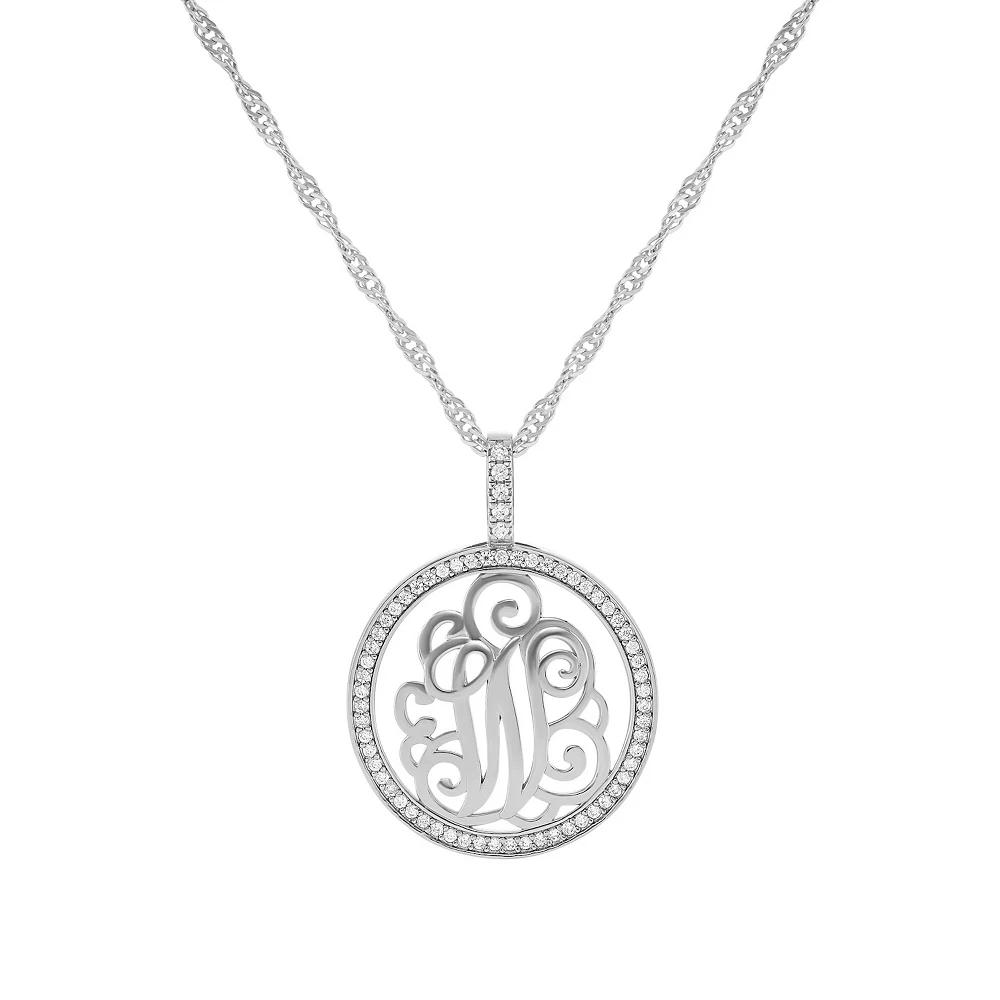 Elevate your style with this PRIMROSE Cubic Zirconia Monogram Initial Coin Pendant. This polished pendant, adorned with sparkling cubic zirconia, hangs elegantly from a delicate Singapore chain, adding a personalized and timeless touch to any outfit. Click on this JEWELRY & WATCHES GUIDE to learn about fit, styles, materials and more! Elevate your style with this PRIMROSE Cubic Zirconia Monogram Initial Coin Pendant. This polished pendant, adorned with sparkling cubic zirconia, hangs elegantly from a delicate Singapore chain, adding a personalized and timeless touch to any outfit. Click on this JEWELRY & WATCHES GUIDE to learn about fit, styles, materials and more! FEATURES Dimensions: 0.92"L x 0.92"W Chain length: 18 in. + 2-in. extender Chain type: Singapore Clasp: spring-ring Nickel free Metal: brass Plating: silver tone, 14k gold flash plated Finish: polished Packaging: decorative cardSTONE DETAILS Stone type: cubic zirconia Total weight: 1/3 ct. Shape: round Setting: channel, pave Gemstones may have been treated to enhance their appearance. Special care may be required. Please visit our Gemstone Treatment & Special Care Guide for more information. Size: 18-20" ADJ. Color: Silver Tone W. Gender: female. Age Group: adult.