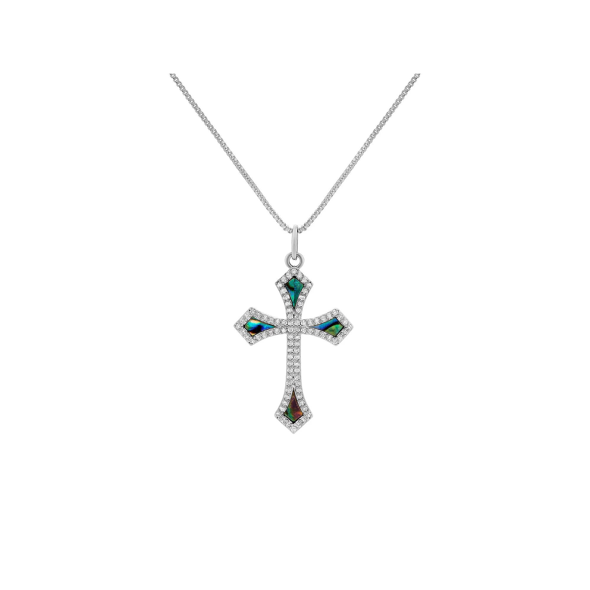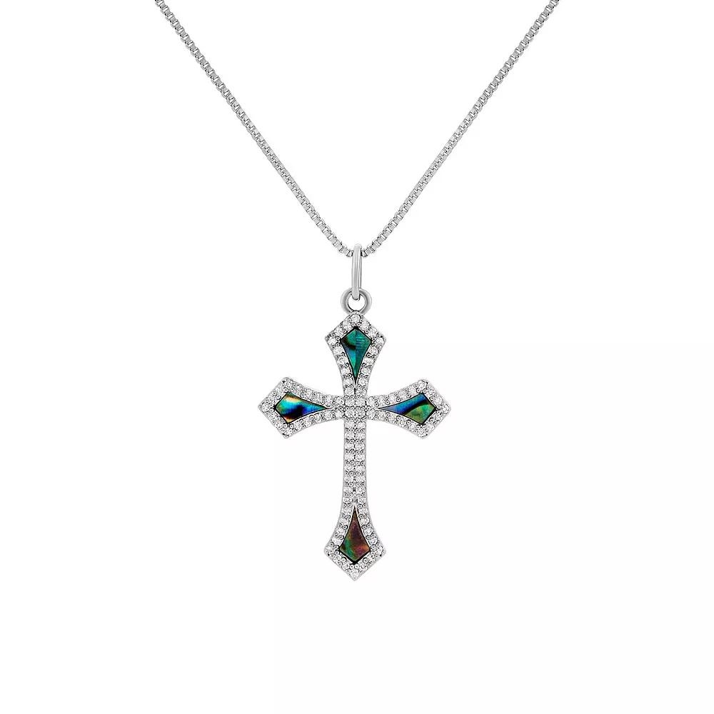 Accessorize in style with this PRIMROSE fine silver plated abalone & cubic zirconia cross necklace. Click on this JEWELRY & WATCHES GUIDE to learn about fit, styles, materials and more! Accessorize in style with this PRIMROSE fine silver plated abalone & cubic zirconia cross necklace. Click on this JEWELRY & WATCHES GUIDE to learn about fit, styles, materials and more! FEATURES Pendant size: 1.12L x 0.80W Chain length: 18 in. Chain type: box Clasp: spring-ring Nickel free Metal: brass Plating: silver tone Finish: polished Packaging: decorative cardSTONE DETAILS Stone type: cubic zirconia, abalone Shape: round Gemstones may have been treated to enhance their appearance. Special care may be required. Please visit our Gemstone Treatment & Special Care Guide for more information. Size: 18. Color: Silver Tone Blue. Gender: female. Age Group: adult.