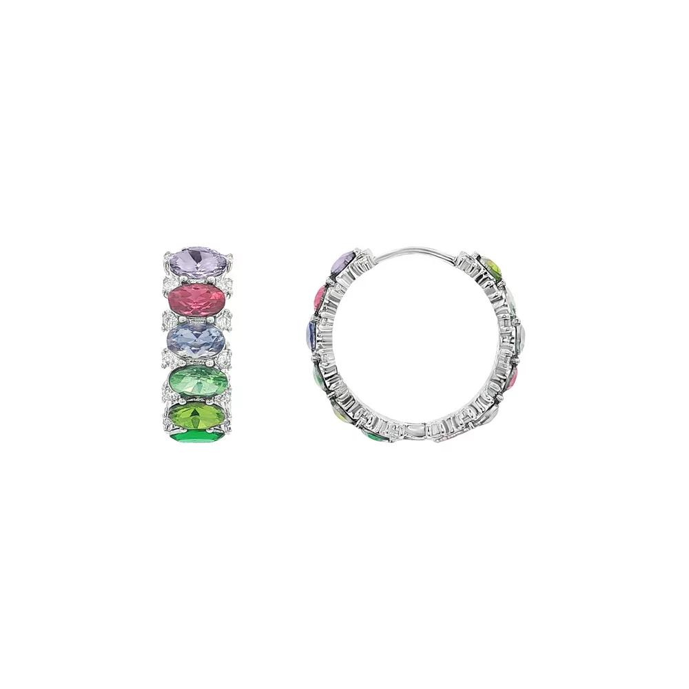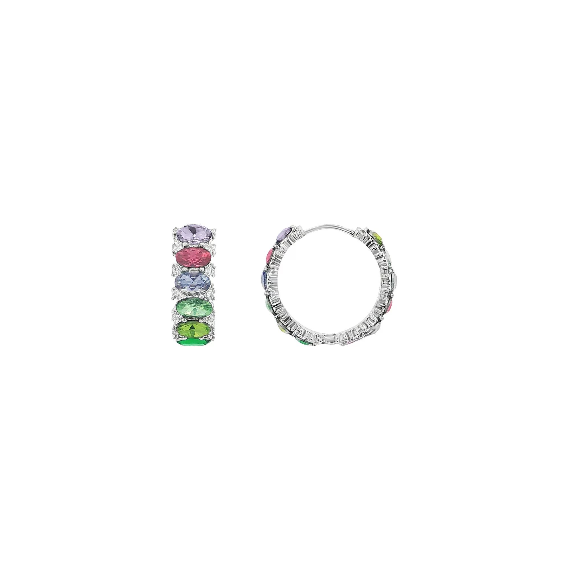 Featuring vibrant multi-gemstone hues that bring a playful splash of color to any outfit, these PRIMROSE earrings will take your accessory game to the next level. Perfect for that chic brunch or a night out, these huggie-style beauties will have you feeling like the star of your own glamour-filled adventure. Click on this JEWELRY & WATCHES GUIDE to learn about fit, styles, materials and more! - https://www.kohls.com/feature/jewelry-guide.jsp. STONE DETAILS: Stone type: crystal, cubic zirconia, Shape: oval, round, Total weight: 5 7/8 ct., Setting: prong. DETAILS: Earring dimensions: 20 mm, Backings: huggie, Base material: brass, Plating: fine silver, Finish: polished, Gift box: decorative card, Nickel free, Origin: imported. Gemstones may have been treated to enhance their appearance. Special care may be required. Please visit our. Gemstone Treatment & Special Care Guide. - https://www.kohls.com/sale-event/gemstone-care-product-guide.shtml for more information. Size: 20MM. Color: Silver Tone. Gender: female. Age Group: adult. Material: PLATED BRASS.
