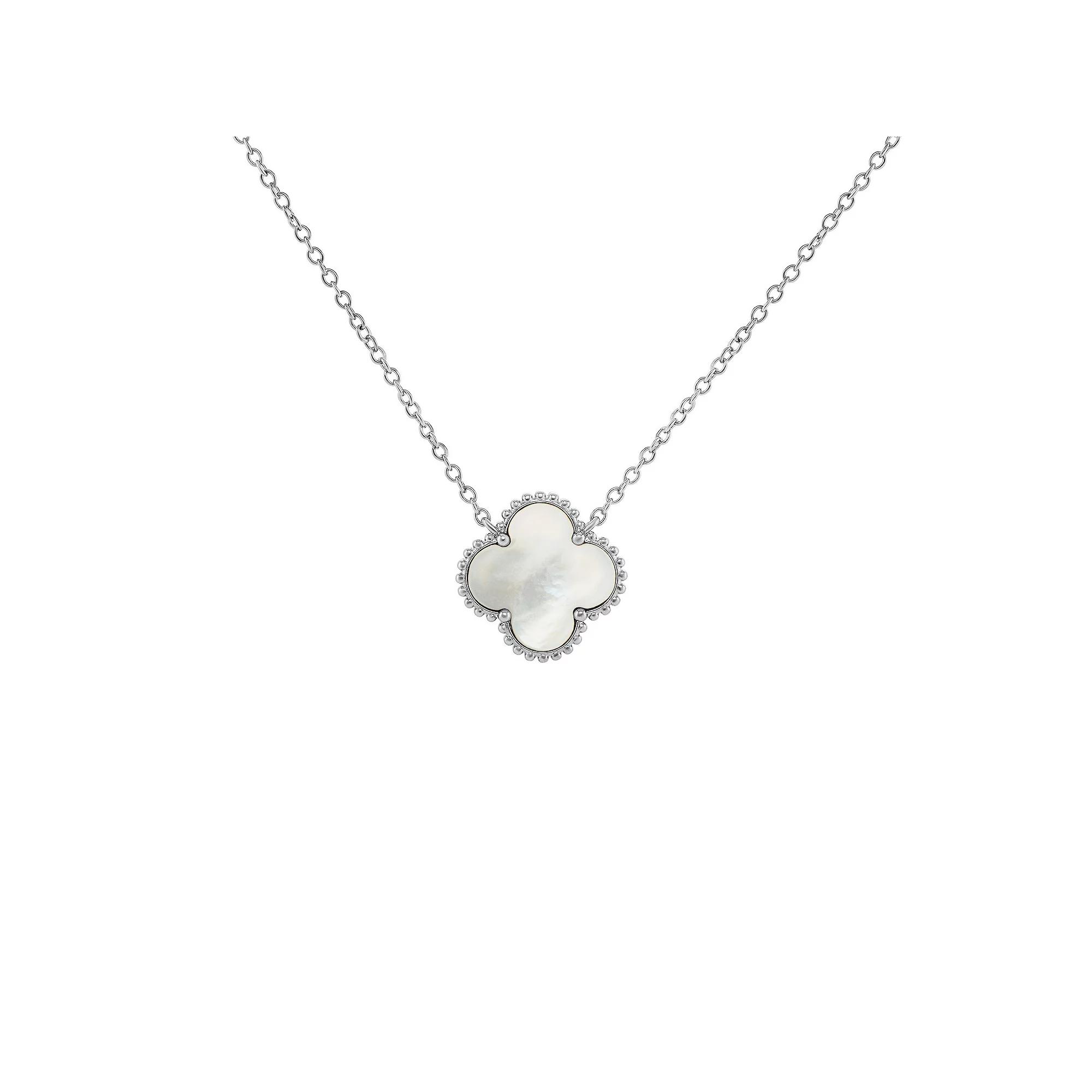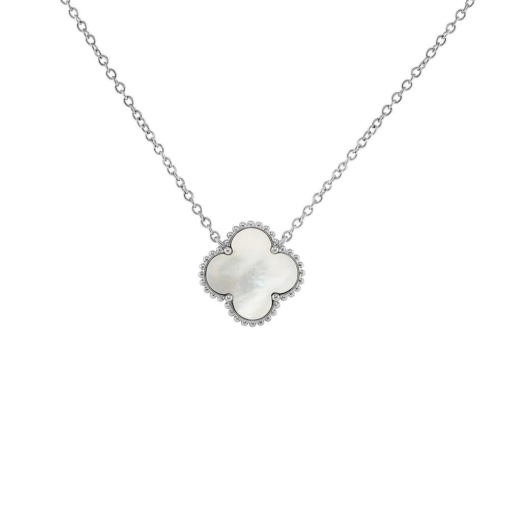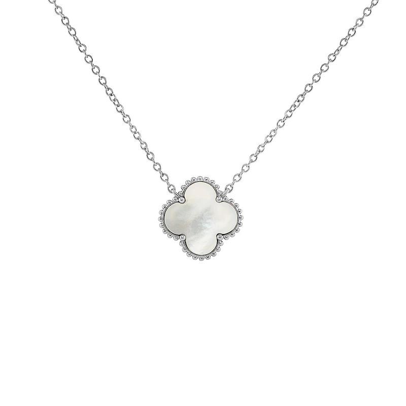 Accessorize in style with this PRIMROSE fine silver plated mother-of-pearl clover necklace. Click on this JEWELRY & WATCHES GUIDE to learn about fit, styles, materials and more! Accessorize in style with this PRIMROSE fine silver plated mother-of-pearl clover necklace. Click on this JEWELRY & WATCHES GUIDE to learn about fit, styles, materials and more! FEATURES Chain length: 18 in. Chain type: cable Clasp: spring-ring Nickel free Metal: brass Plating: silver tone Finish: polished Packaging: decorative card Mother-of-pearl accent Size: 18". Color: Silver Tone White. Gender: female. Age Group: adult.