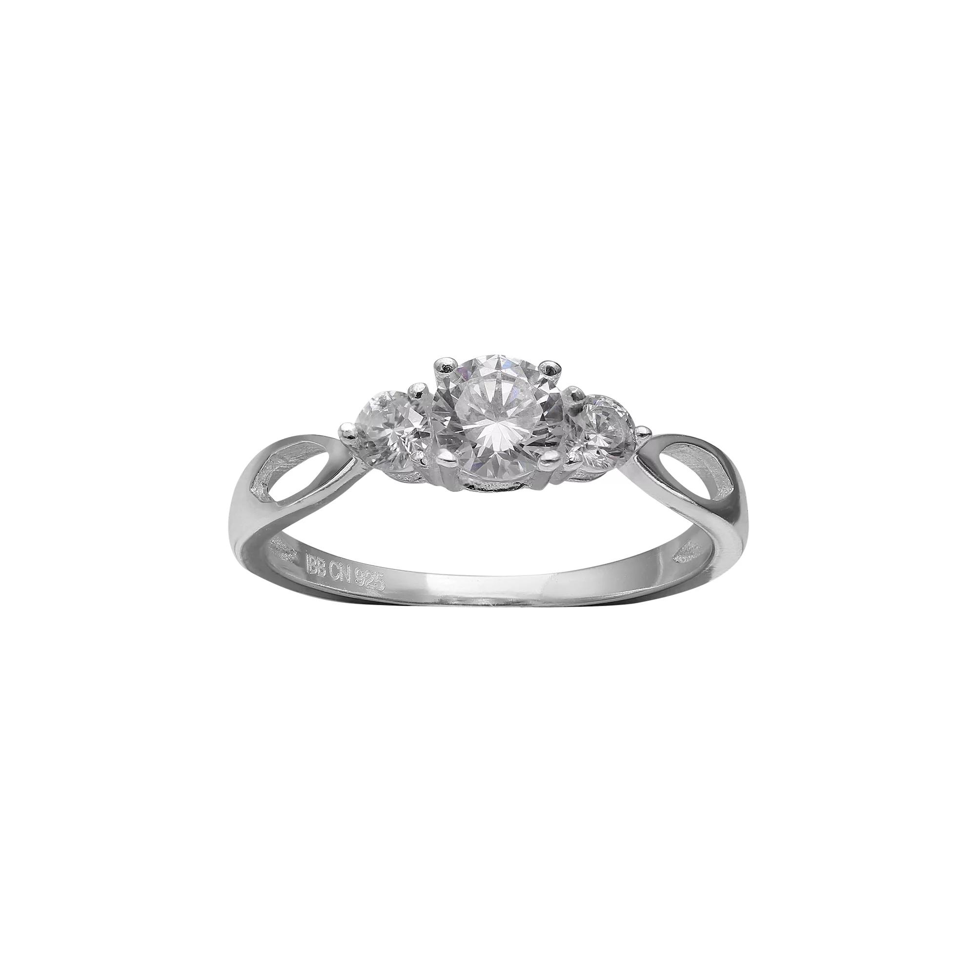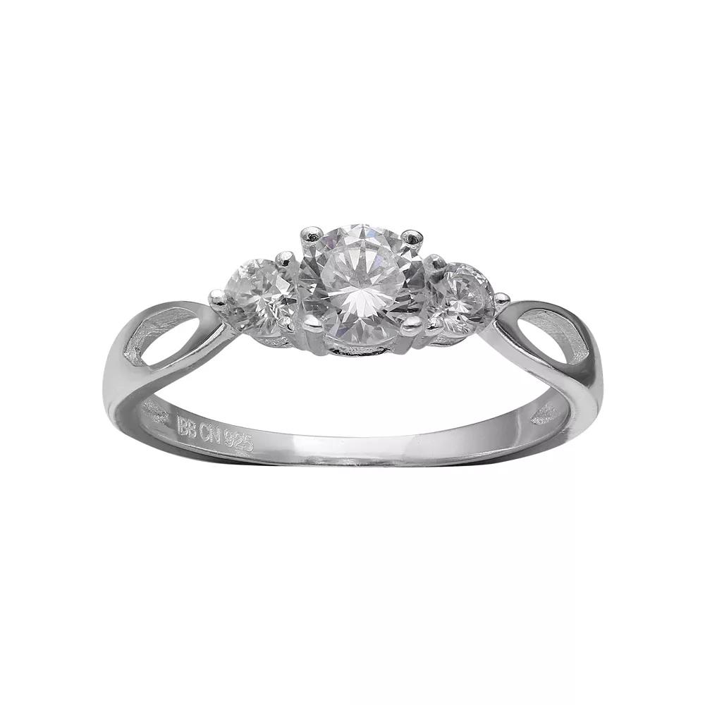 Round-cut cubic zirconia stones set into a three-stone motif give this sterling silver ring scintillating style, while open-worked elements add eye-catching charm.Click here for more PRIMROSE jewelry.RING DETAILS Width: 5 mm Metal: sterling silver CUBIC ZIRCONIA DETAILS Total weight: 1 1/6 ct. Center stone weight: 3/4 ct. Shape: round Setting: prong Size: 9. Color: White. Gender: female. Age Group: adult.
