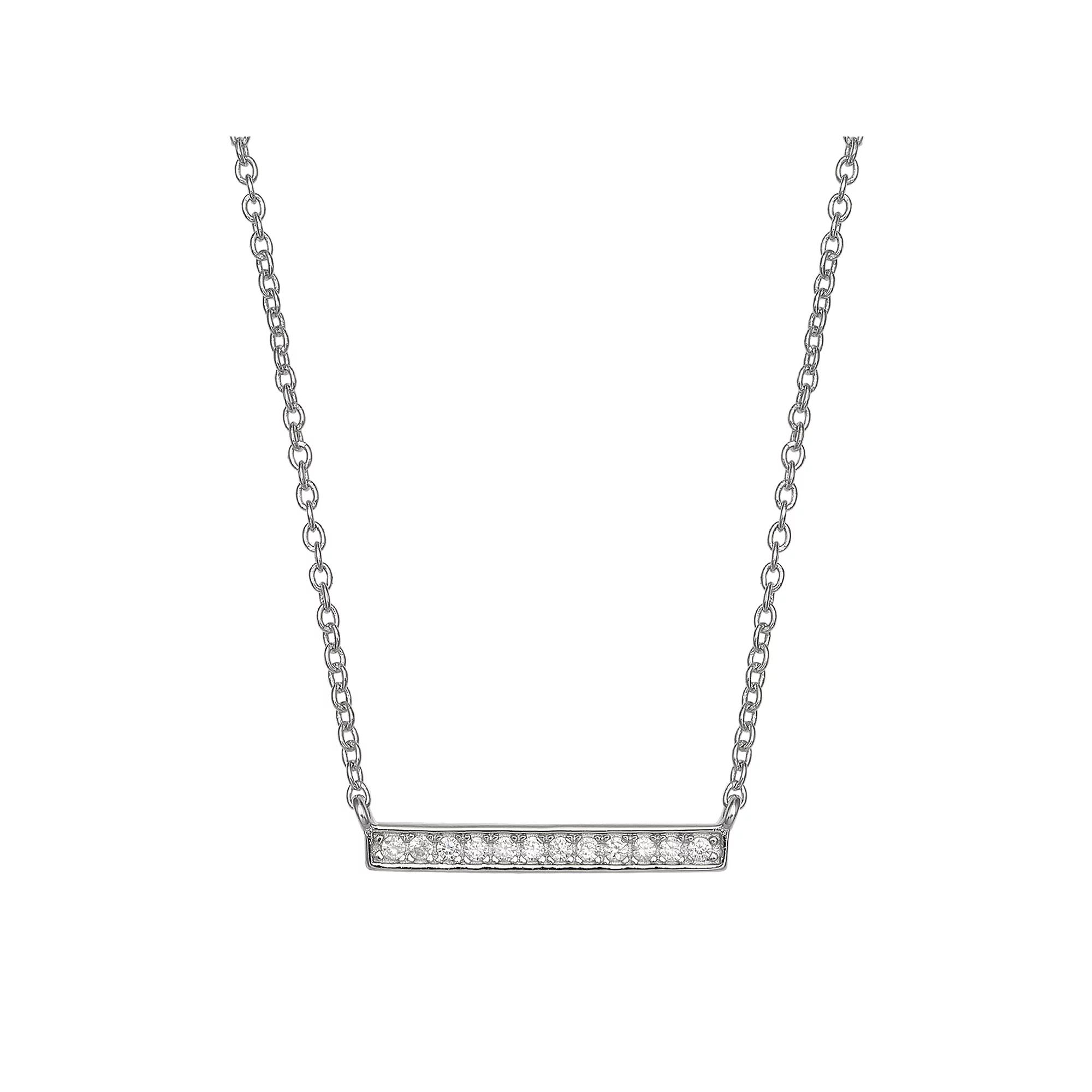 Adorned with a dazzling dozen CZ stones, this PRIMROSE sterling silver bar necklace is an eye-catching accent to your attire.Click here for more PRIMROSE jewelry.NECKLACE DETAILSLength: 18 in.Drop length: 18 mm x 2 mmChain type: cableClasp: spring ringMetal: sterling silverPlating: rhodiumCUBIC ZIRCONIA DETAILSTotal weight: less than 1/10 ct.Shape: roundSetting: bezelGemstones may have been treated to enhance their appearance. Special care may be required. Size: 18. Gender: female. Age Group: adult.