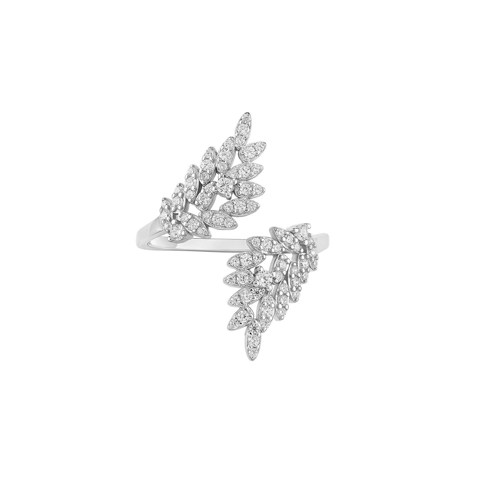 PRIMROSE Sterling Silver Cubic Zirconia Double Leaf Bypass Ring, Women's,  Product Image