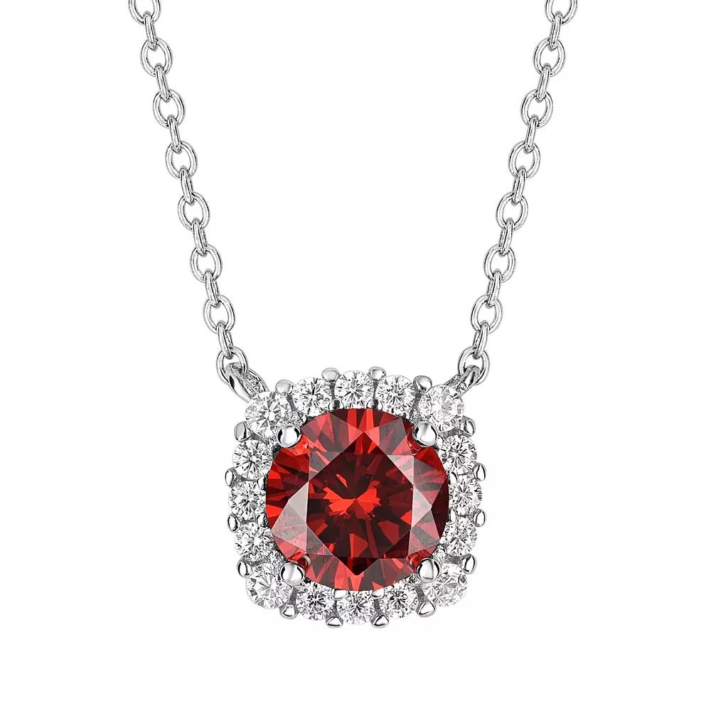 Add a touch of radiant style to any outfit with this beautiful halo cubic zirconia pendant necklace from PRIMROSE. Add a touch of radiant style to any outfit with this beautiful halo cubic zirconia pendant necklace from PRIMROSE. NECKLACE DETAILS Drop length: 0.39 in. Chain length: 18 in. Chain type: cable Clasp: spring-ring Metal: sterling silver Finish: polished Plating: rhodium Packaging: boxedCUBIC ZIRCONIA DETAILS Total weight: 1 1/2 ct. Shape: round Setting: pave, prong Size: 18. Color: Red. Gender: female. Age Group: adult.