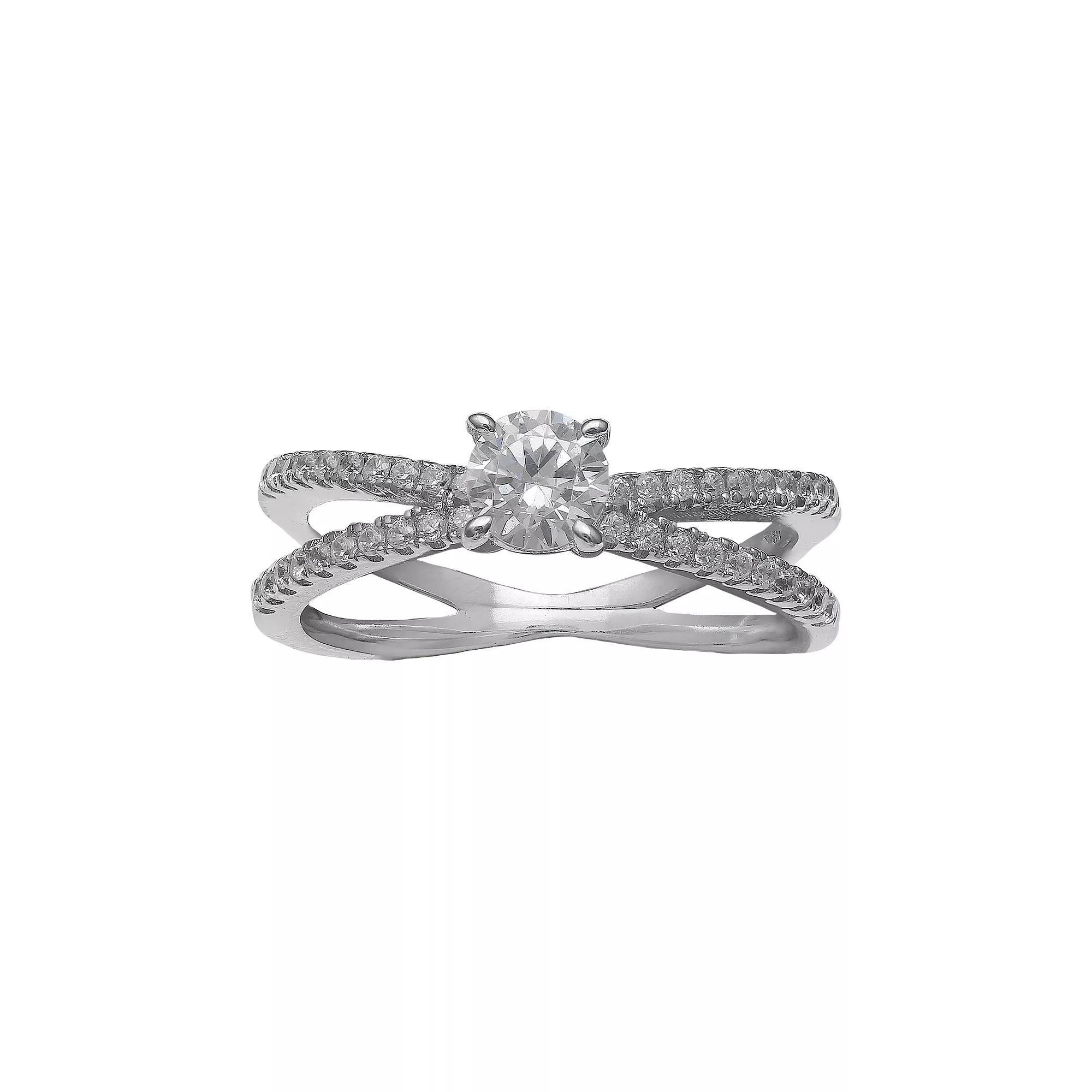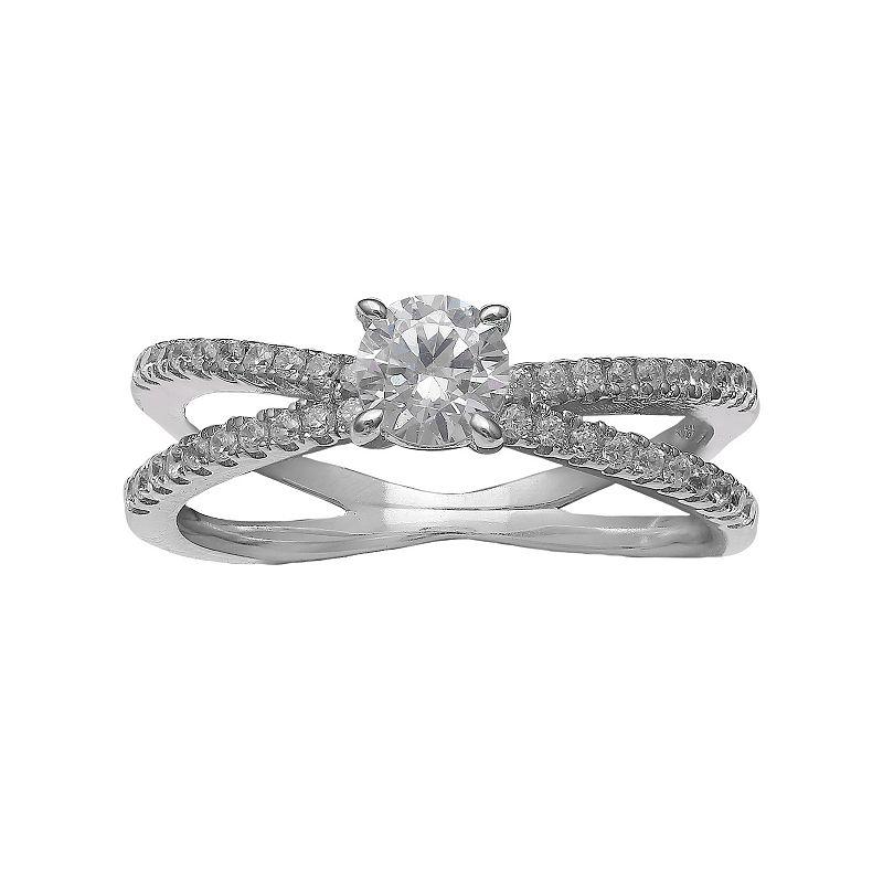 Complement any look with the timeless design of this PRIMROSE split shank ring.RING DETAILS Width: 5.1 mm Metal: sterling silver Finish: polished CUBIC ZIRCONIA DETAILS Total weight: 7/8 ct. Center stone size: 5 mm x 5 mm Shape: round Setting: prong, pave Gemstones may have been treated to enhance their appearance. Special care may be required. Please visit our Gemstone Treatment & Special Care Guide for more information. Color: White. Gender: female. Age Group: adult.