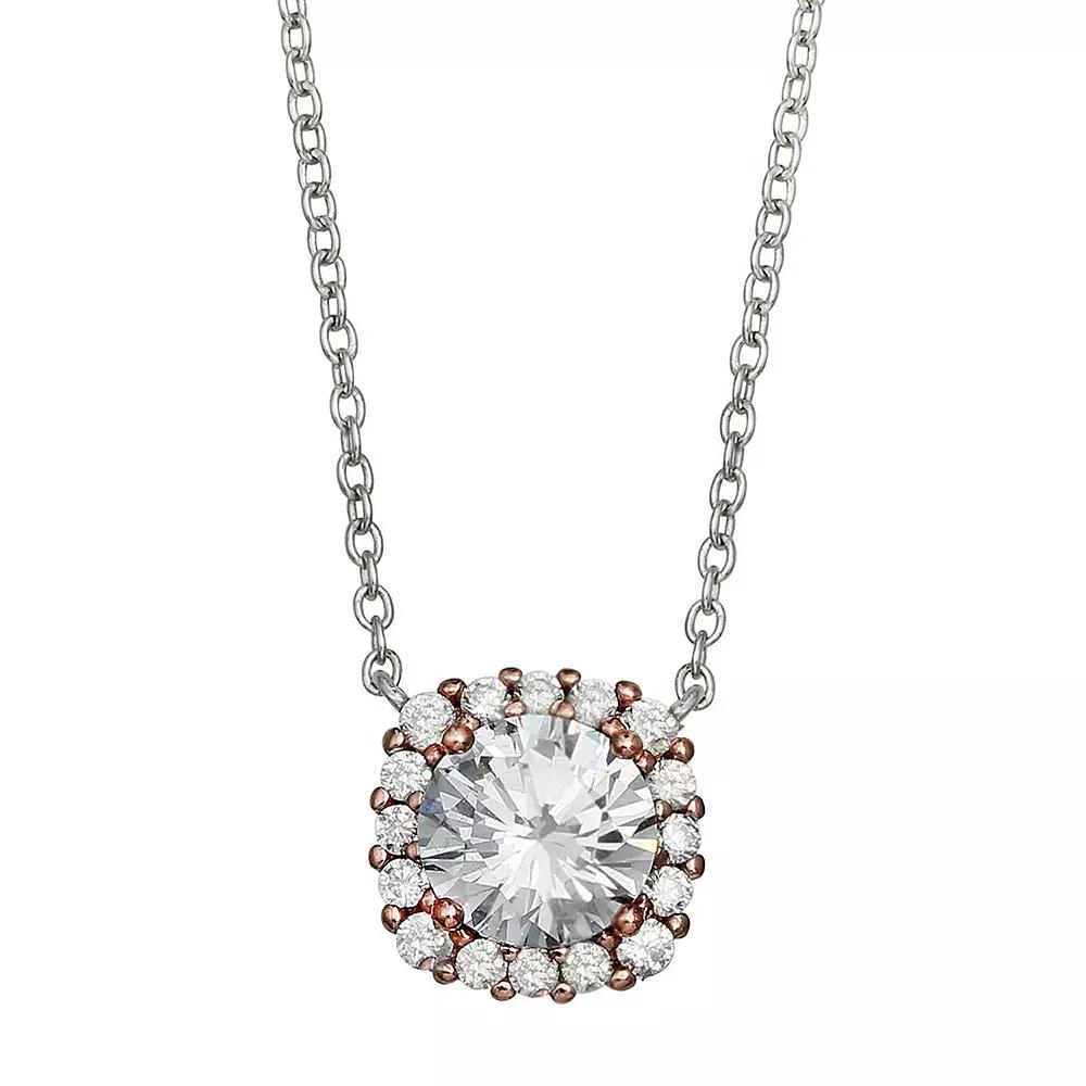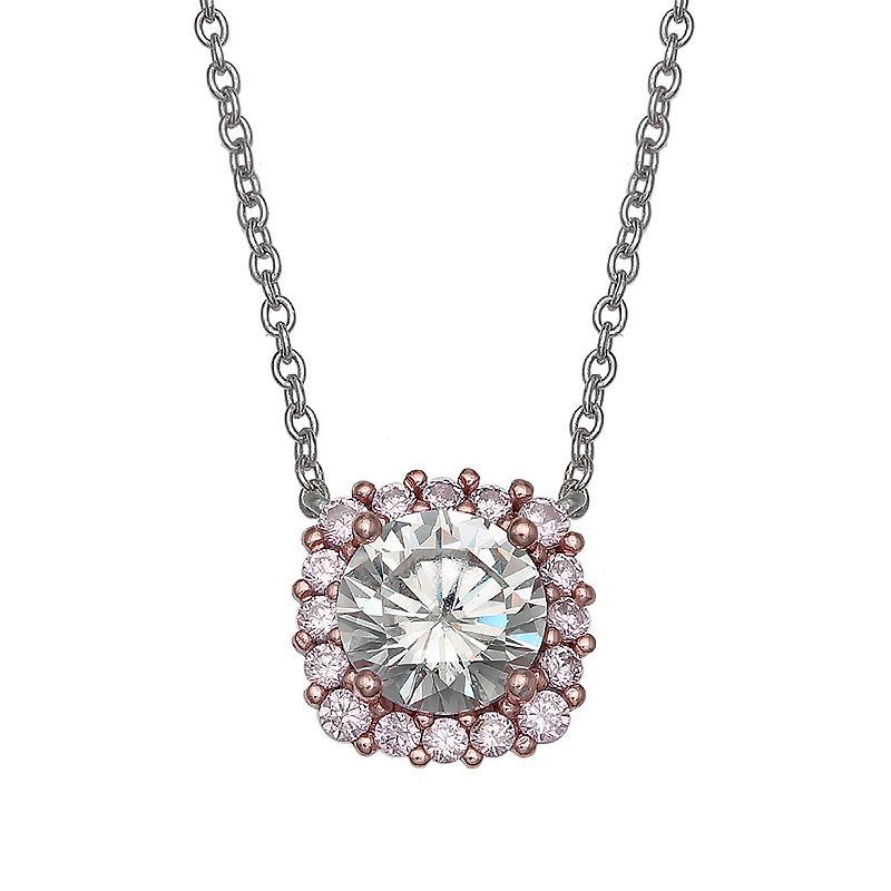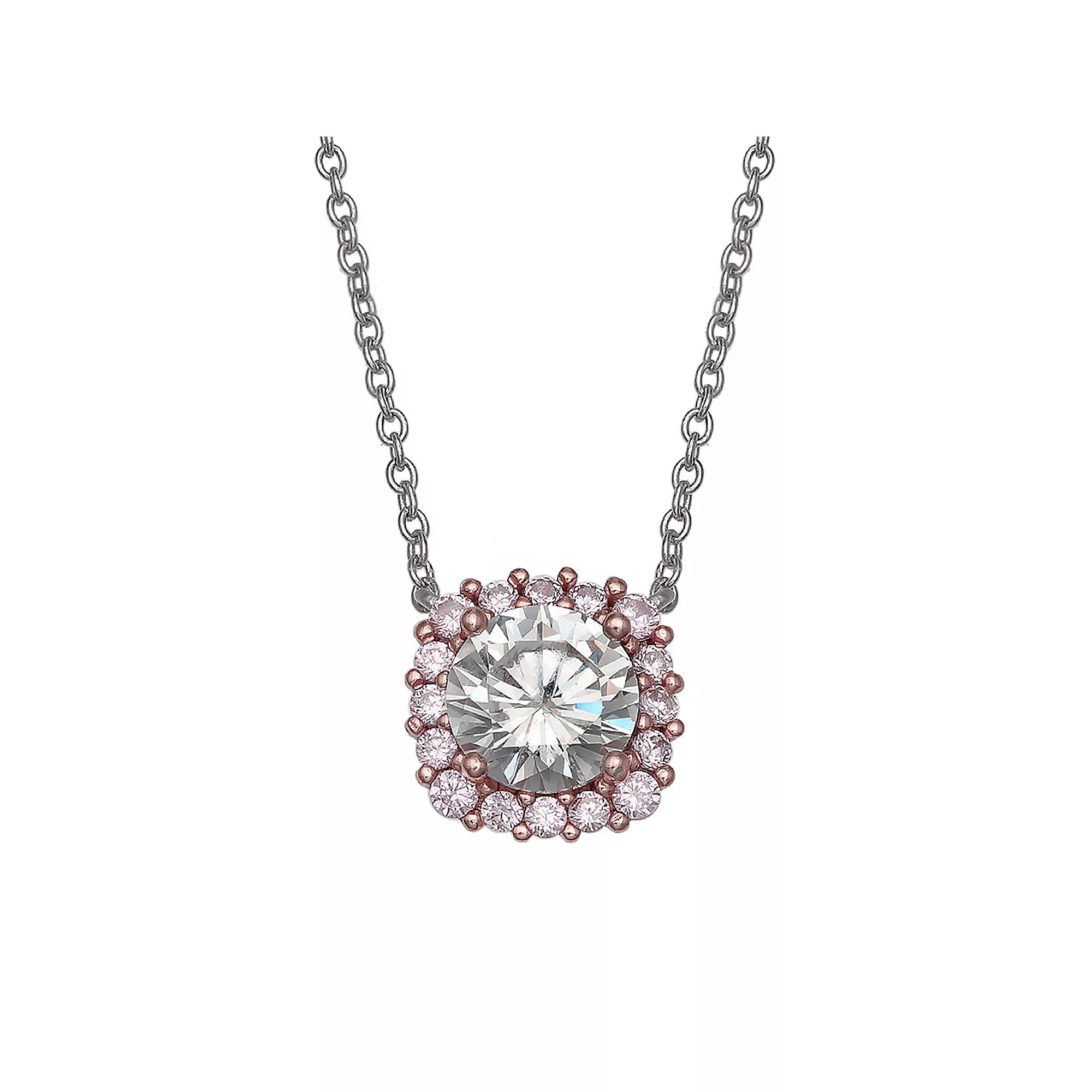 Adorned with round-cut cubic zirconia stones in a halo design, this PRIMROSE pendant necklace captivates from every angle. Adorned with round-cut cubic zirconia stones in a halo design, this PRIMROSE pendant necklace captivates from every angle. Pendant length: 0.39 in. Chain length: 18 in. Chain type: cable Nickel free Metal: sterling silver Finish: polished Packaging: decorative cardSTONE DETAILS Stone type: cubic zirconia Total weight: 1 1/2 ct. Center stone weight: 1 1/4 ct. Center stone size: 7 mm Shape: round Setting: pave, prong Please note, due to the high value of this item, a signature may be required upon delivery. Size: 18". Color: Pink. Gender: female. Age Group: adult. Material: Gold Over Sterling.