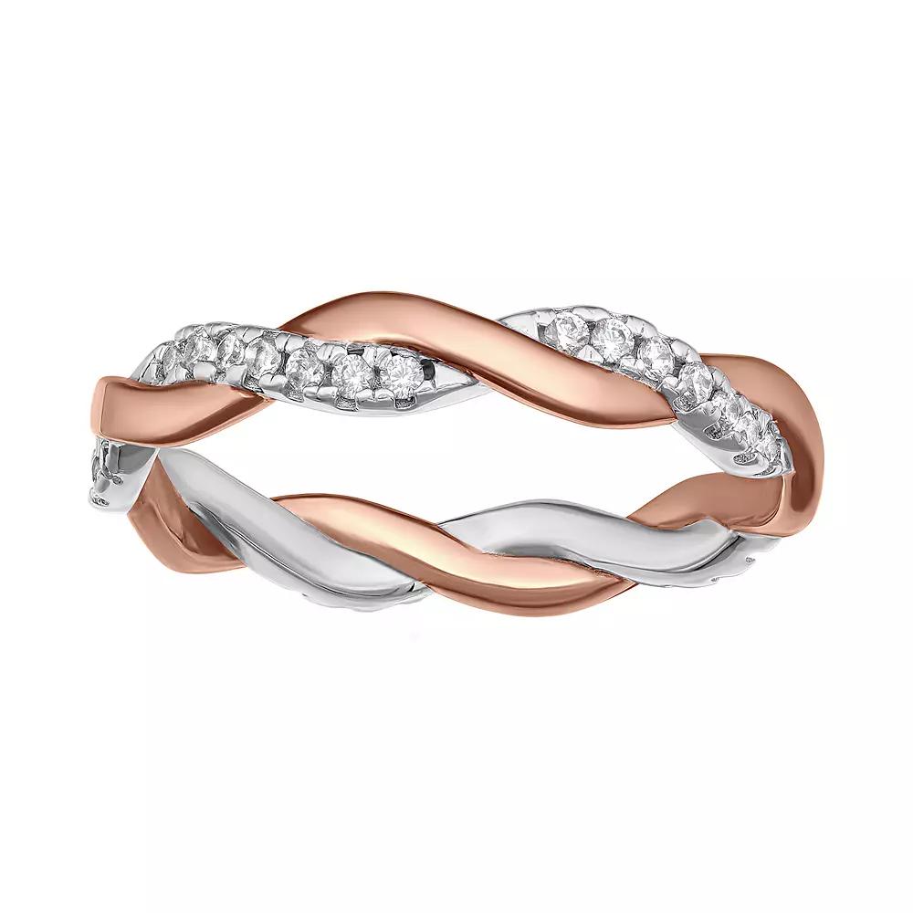 Accessorize your everyday style with this beautiful cubic zirconia twist band ring from PRIMROSE. Accessorize your everyday style with this beautiful PRIMROSE cubic zirconia twist band ring. Width: 22 mm Metal: sterling silver Finish: polished Packaging: decorative card STONE DETAILS Stone type: cubic zirconiaTotal weight: 1/3 ct. Shape: round Color: clear Setting: pave Size: 7. Color: Pink. Gender: female. Age Group: adult. Material: Gold Over Sterling.