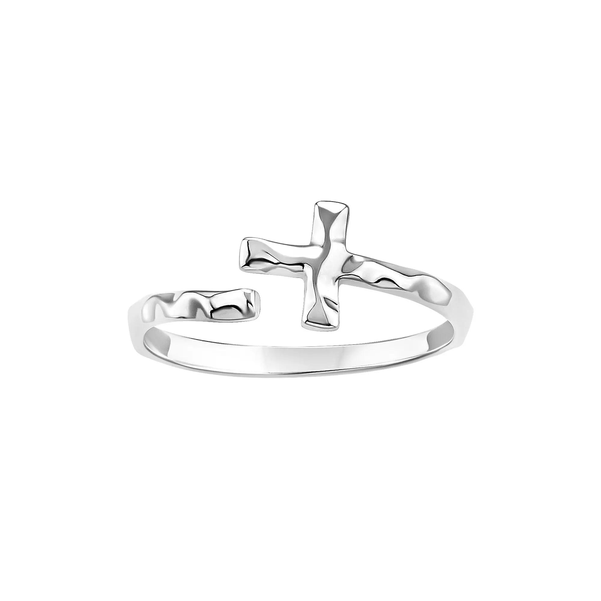 Showcase your faith with this lovely PRIMROSE Sterling Silver Hammered Sideways Cross Bypass Ring. Click on this JEWELRY & WATCHES GUIDE to learn about fit, styles, materials and more! Showcase your faith with this lovely PRIMROSE Sterling Silver Hammered Sideways Cross Bypass Ring. Click on this JEWELRY & WATCHES GUIDE to learn about fit, styles, materials and more! FEATURES Width: 8 mm Shank style: bypass Band fit: comfort fit Nickel free Metal: sterling silver Plating: silver tone Finish: hammered Packaging: decorative card Imported Size: 7. Gender: female. Age Group: adult.