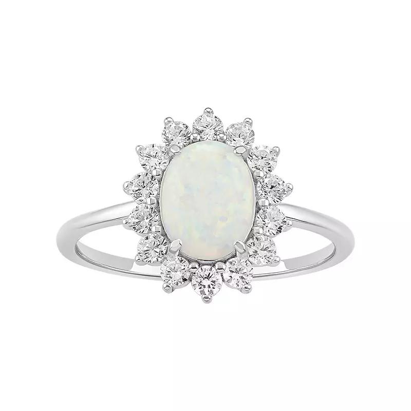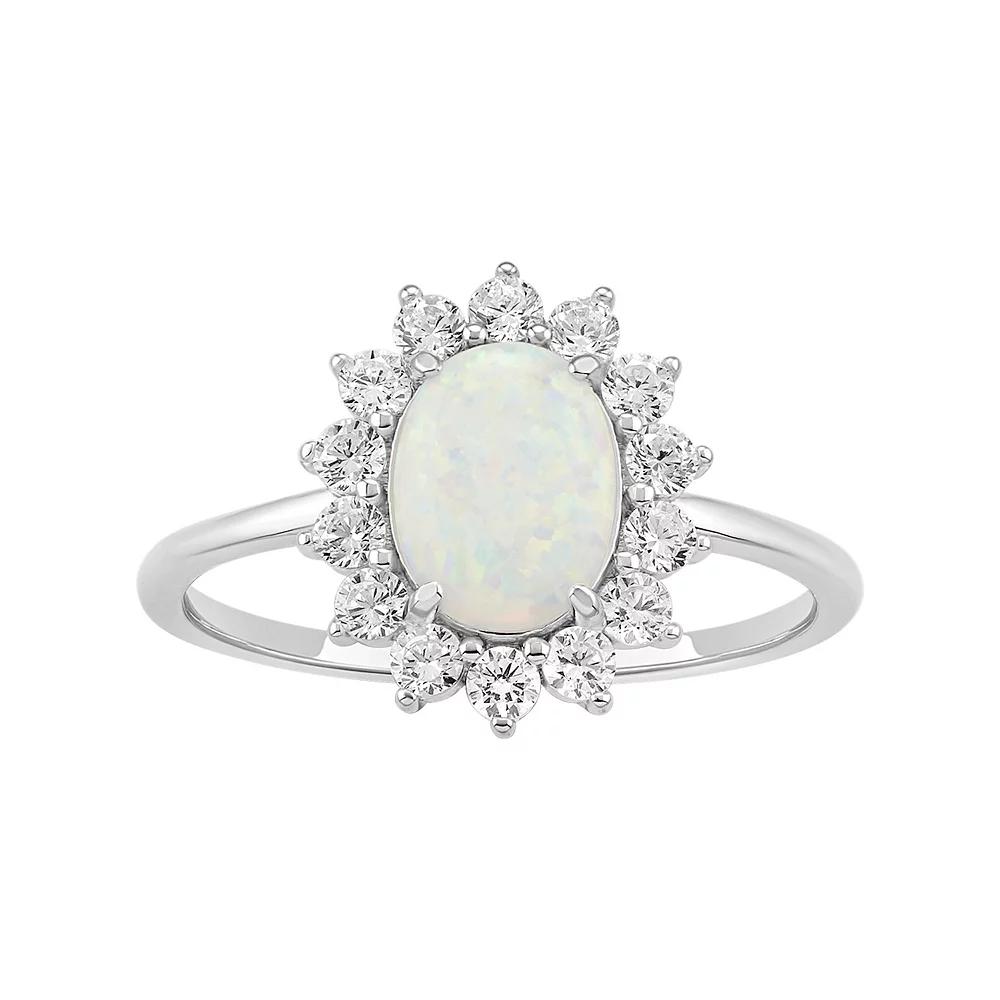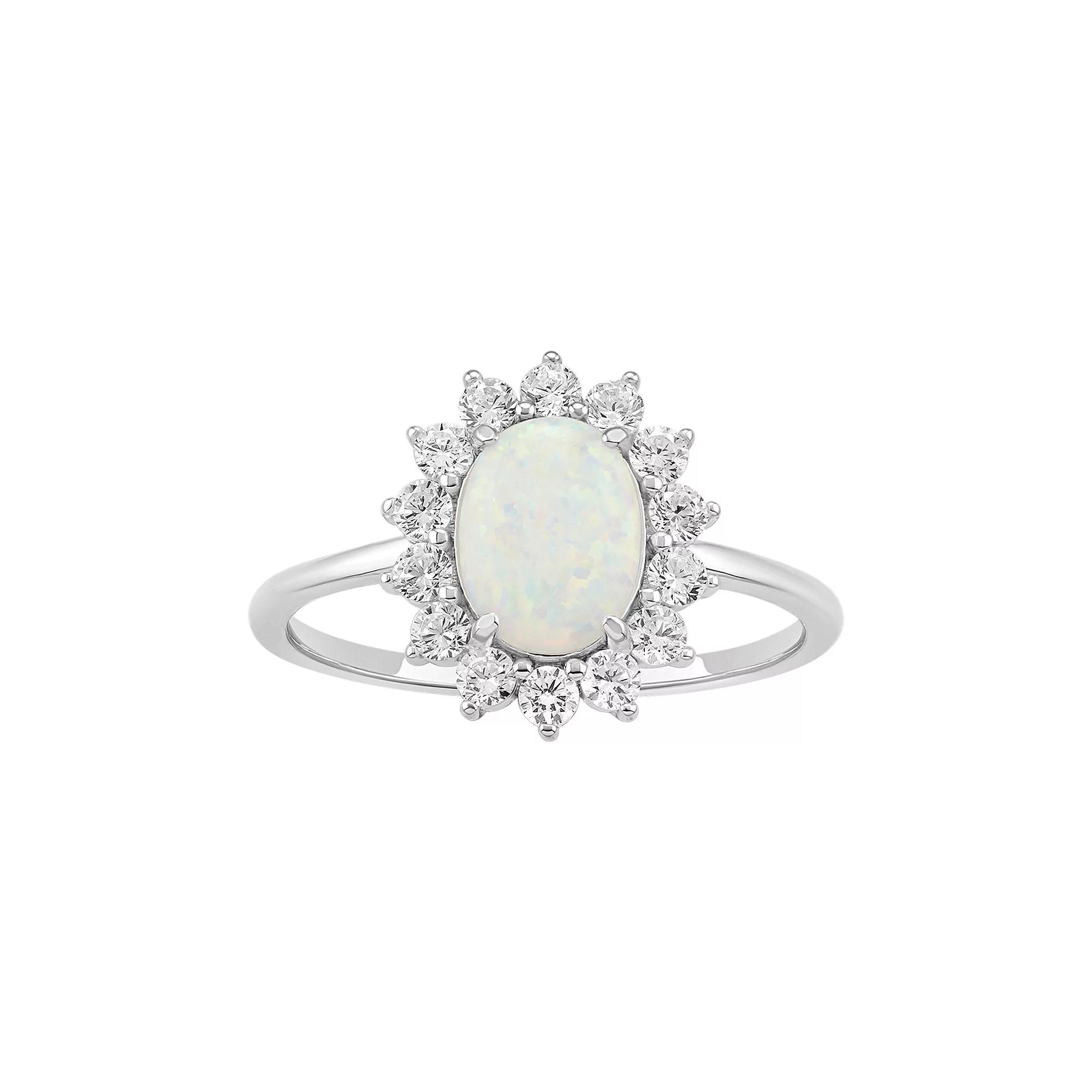 Elegant and timeless, the PRIMROSE Sterling Silver Oval Opal Flower Ring showcases a polished band with an oval opal centerpiece, perfect for both casual and formal wear. Click on this JEWELRY & WATCHES GUIDE to learn about fit, styles, materials and more! Elegant and timeless, the PRIMROSE Sterling Silver Oval Opal Flower Ring showcases a polished band with an oval opal centerpiece, perfect for both casual and formal wear. Click on this JEWELRY & WATCHES GUIDE to learn about fit, styles, materials and more! FEATURES Width: 13.5 mm Shank style: straight Band fit: comfort fit Nickel free Metal: sterling silver Plating: rhodium Finish: polished Packaging: boxed ImportedSTONE DETAILS Stone type: cubic zirconia, opal Total weight: 1 5/8 ct. Center stone weight: 1 1/5 ct. Center stone size: 6 mm x 8 mm Shape: oval, round Setting: prong Gemstones may have been treated to enhance their appearance. Special care may be required. Please visit our Gemstone Treatment & Special Care Guide for more information. Size: 7. Color: Silver Tone White. Gender: female. Age Group: adult.