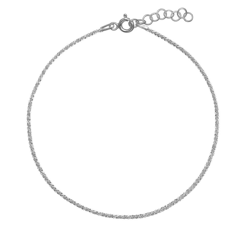 Create a fun and flirty look with this PRIMROSE sparkle chain anklet. Create a fun and flirty look with this PRIMROSE sparkle chain anklet. BRACELET DETAILS Length: 9 in. + 1-in. extender Clasp: spring ring Nickel free Metal: sterling silver Finish: polished Packaging: decorative card Size: 9". Color: White. Gender: female. Age Group: adult.