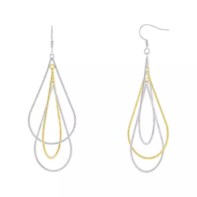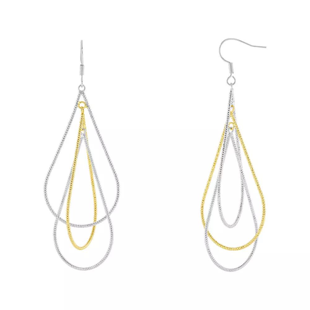 Enhance your look with these PRIMROSE Triple Diamond Cut Teardrop Earrings. Click on this JEWELRY & WATCHES GUIDE to learn about fit, styles, materials and more! Enhance your look with these PRIMROSE Triple Diamond Cut Teardrop Earrings. Click on this JEWELRY & WATCHES GUIDE to learn about fit, styles, materials and more! FEATURES Length: 77.5 mm Backings: fishhook Nickel free Metal: brass Plating: silver tone, 18k gold flash Finish: diamond-cut Packaging: decorative card Imported Size: One Size. Color: Two Tone. Gender: female. Age Group: adult. Material: Silver Plate.