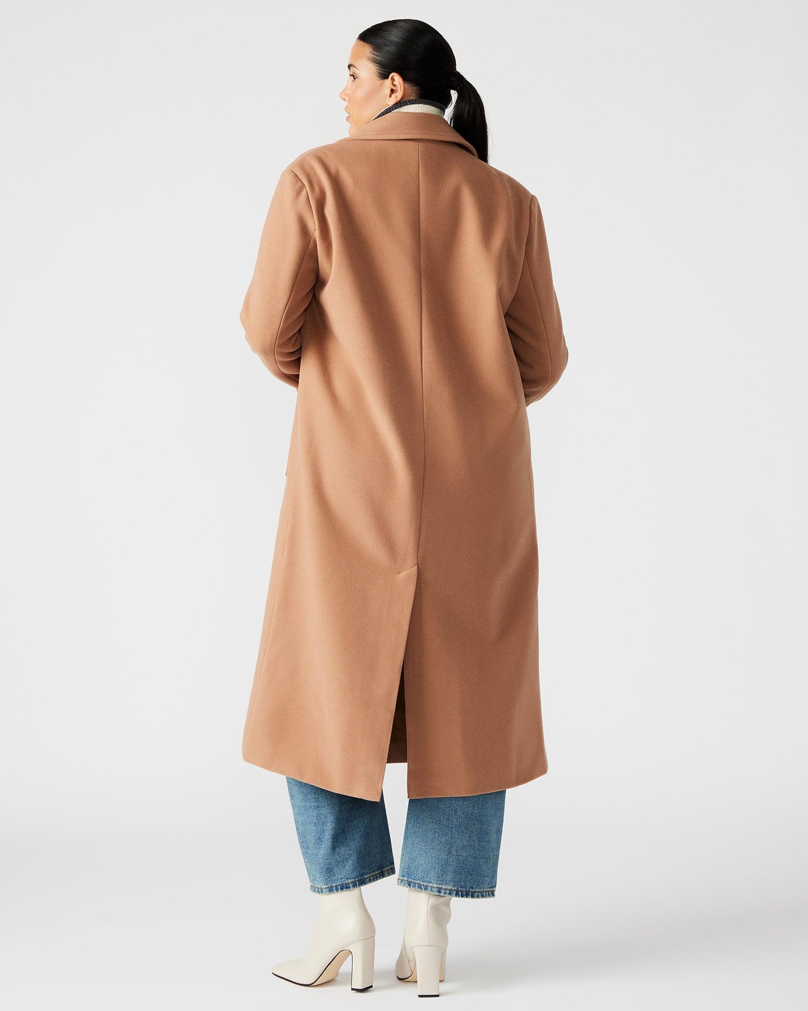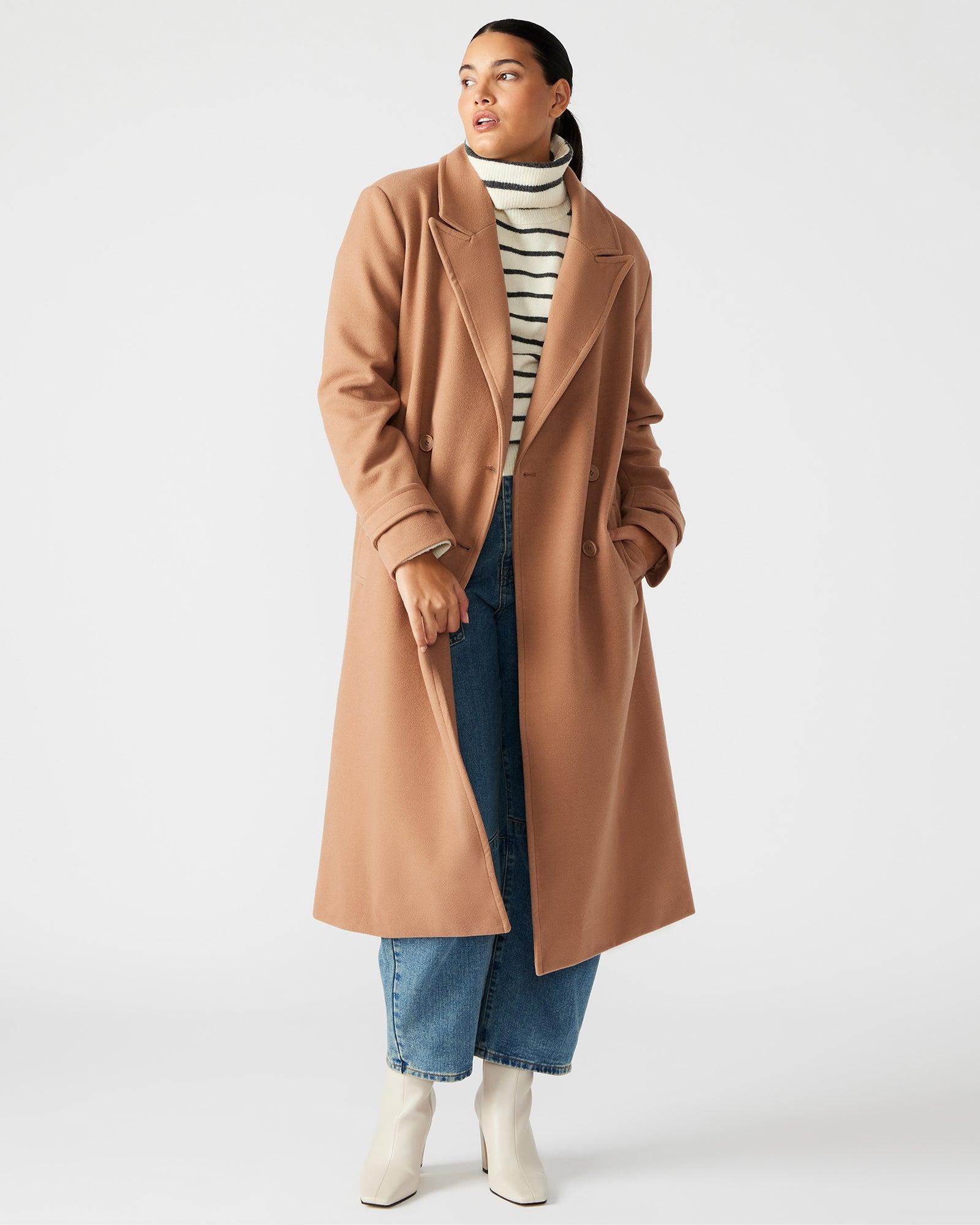 Crafted for a polished and structured look, the PRINCE coat features a solid color design and a double-breasted silhouette. With functional pockets and additional faux pockets, this coat offers both style and practicality. Complete with shoulder pads for added structure, it's the perfect addition to any wardrobe. Double-breasted midi-length coat Button-front closure Two side slip pockets Back vent Lined Length: 45.25" 81% polyester 12% rayon 7% elastane Hand wash Eve is 5ft 9.5in and is wearing a size small Stephanie is 5ft 10in and is wearing a size large Imported