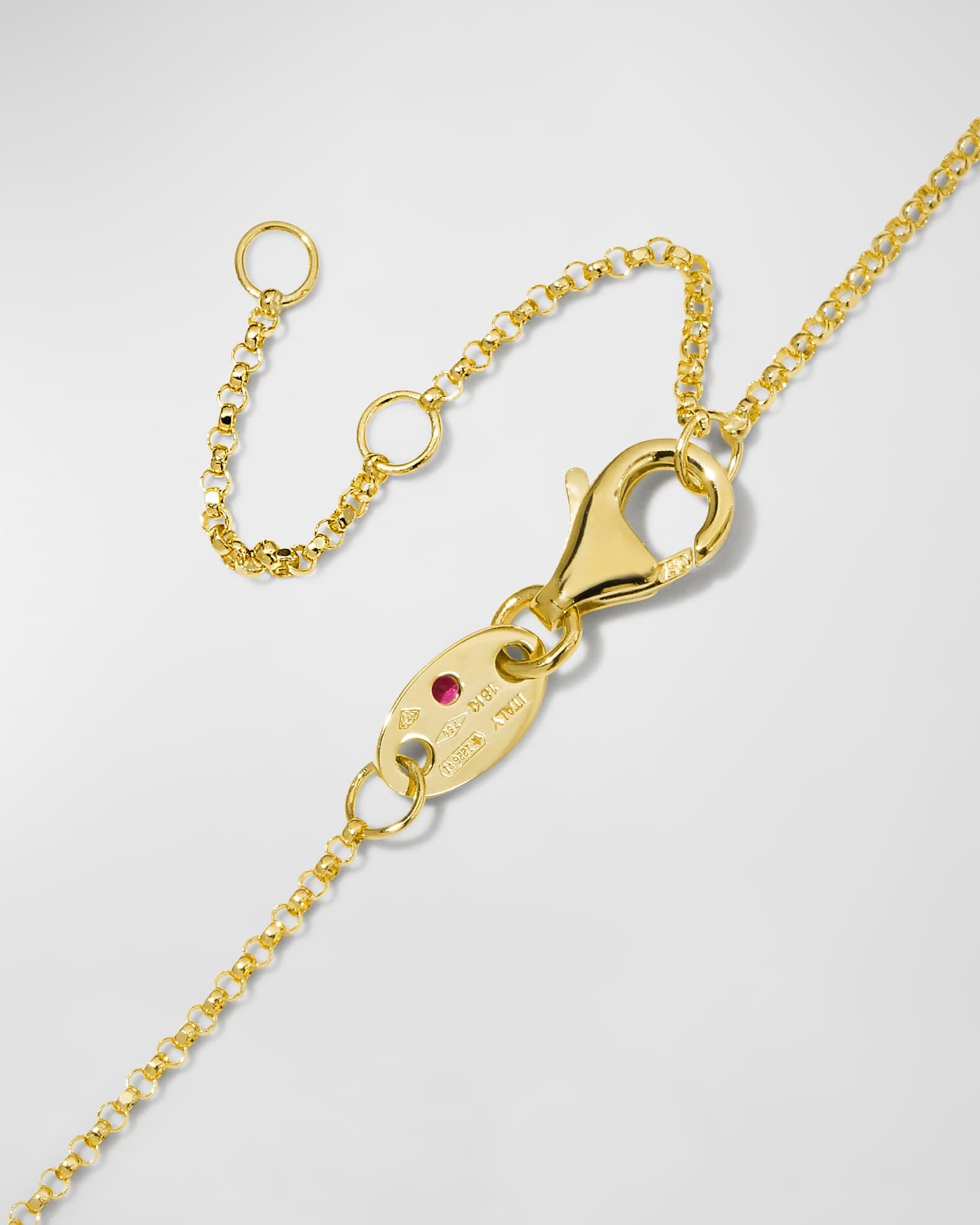 Roberto Coin necklace from the Princess Collection Approx. 16" chain; 0.6" initial pendant 18-karat yellow gold rolo chain Top link with single diamond detail 0.04 total diamond carat weight Signature hidden genuine ruby Adjustable length Lobster clasp Made in Italy
