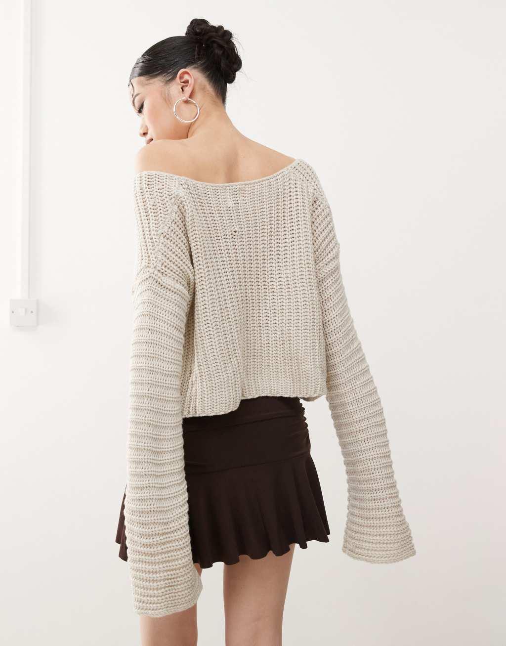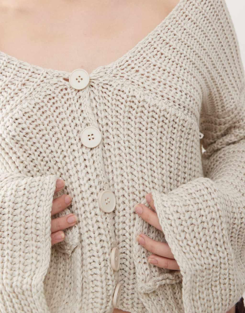 Princess Polly cropped v neck button front bell sleeve knit cardigan in beige