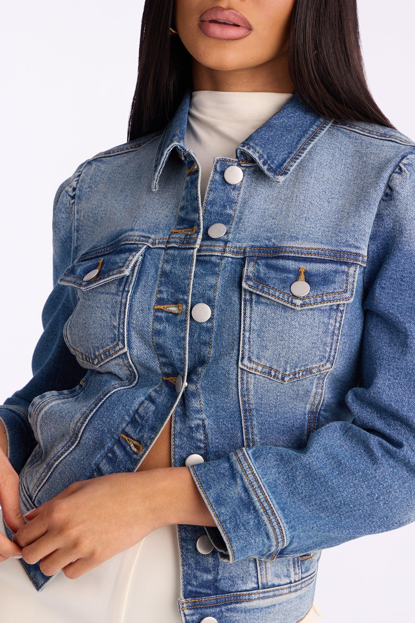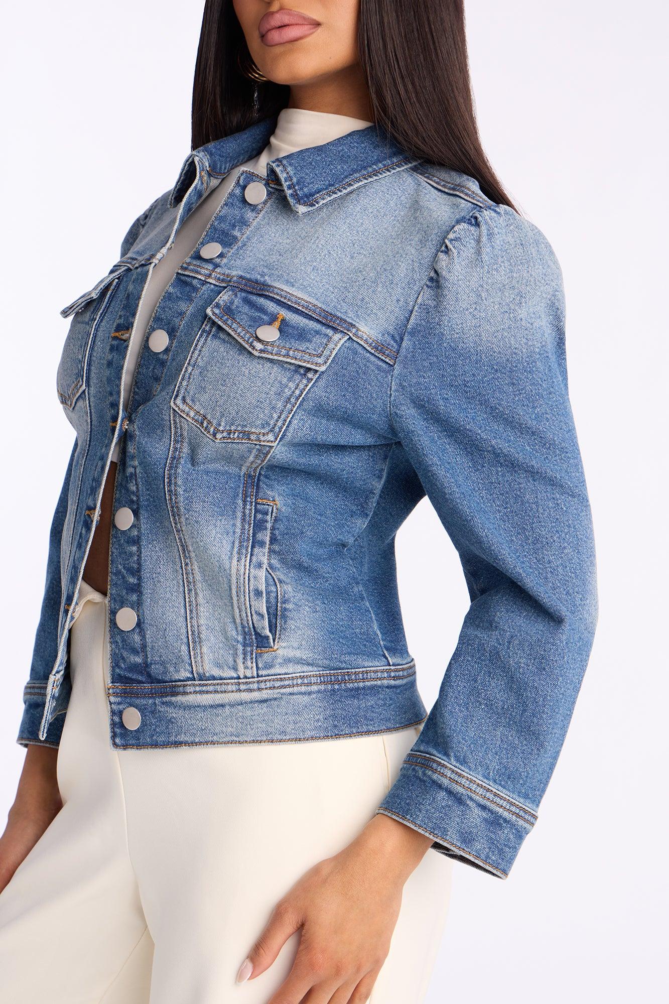 Princessa Puff Sleeve Denim Jacket - Medium Wash Female