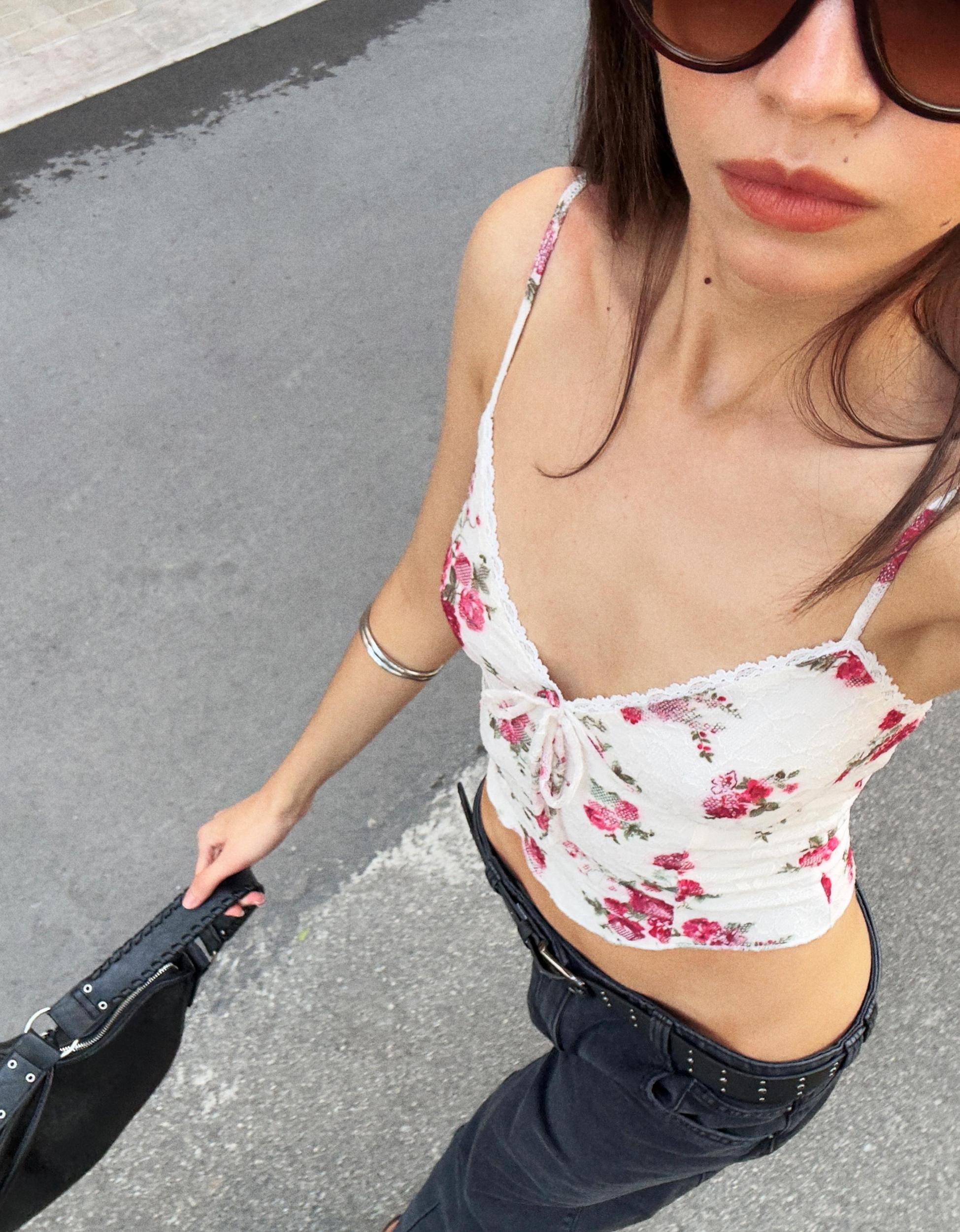 Printed blonde lace top
