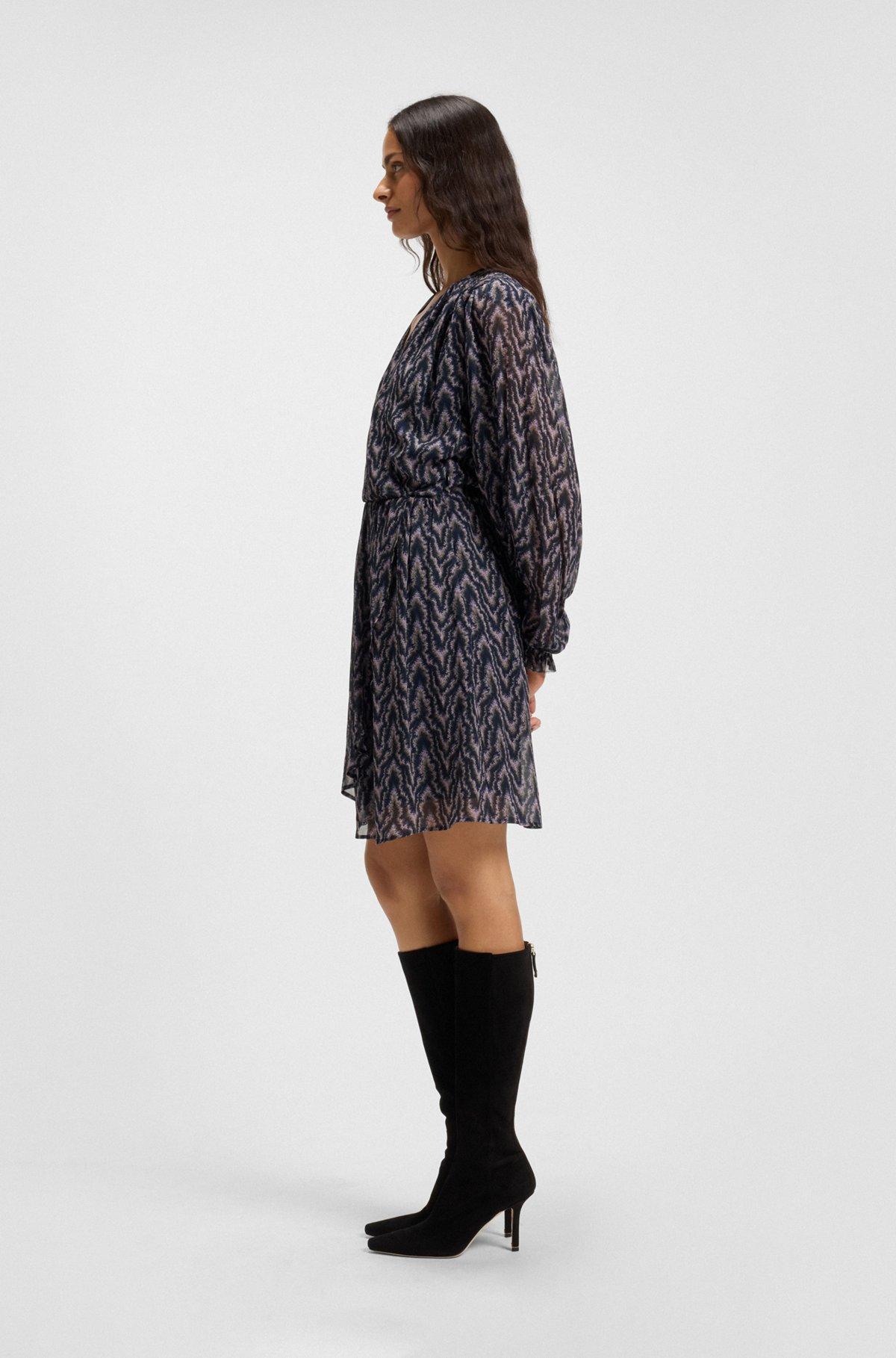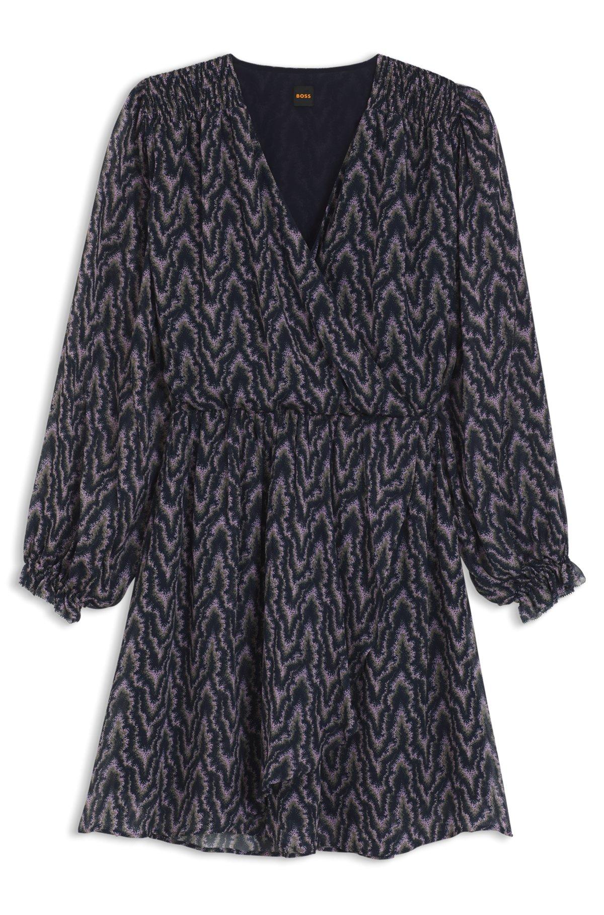 Printed-crepe dress with smocking