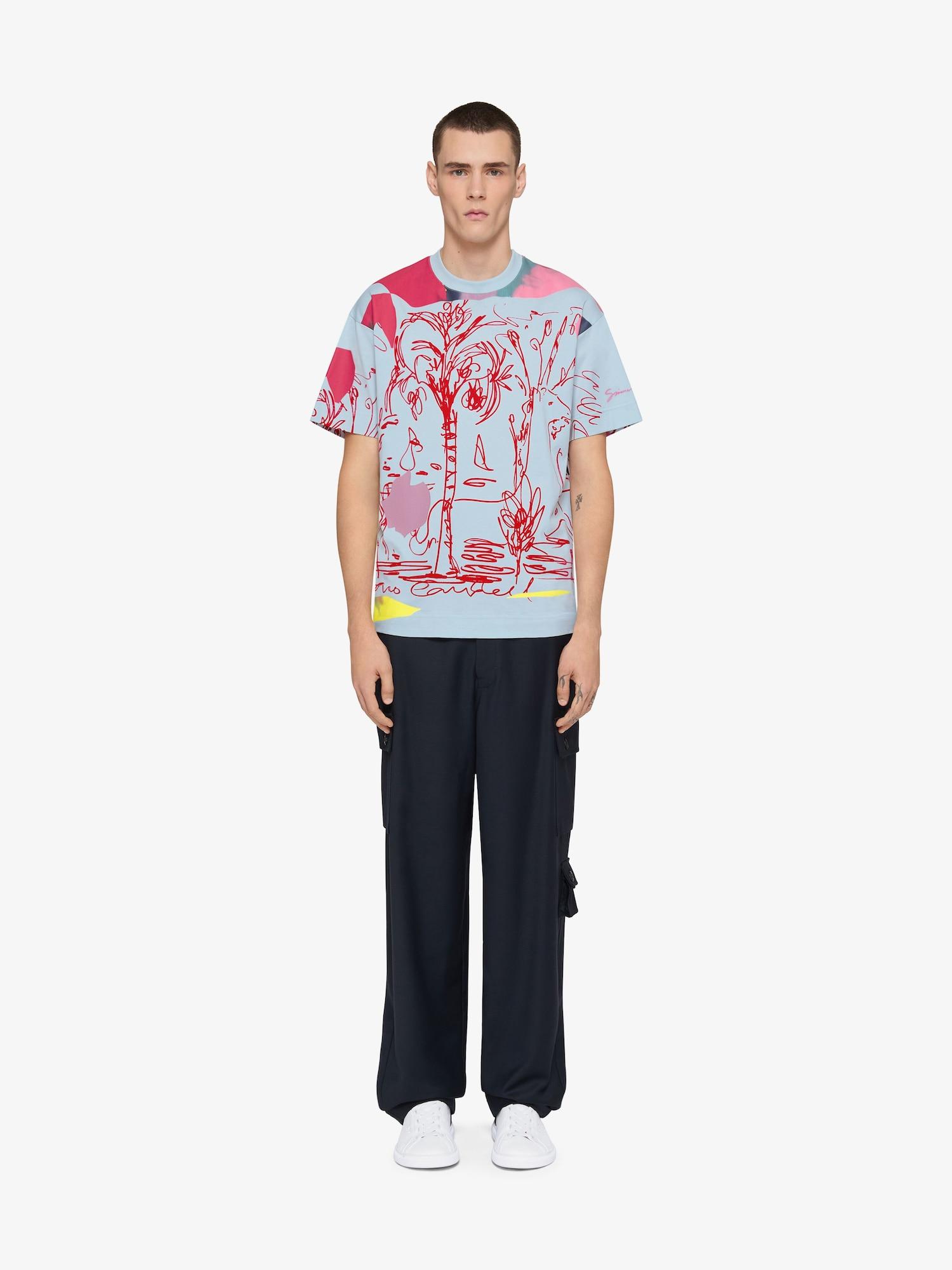 In collaboration with Tomo Campbell, London based artist who focuses on contemporary artworks, Givenchy House presents an artistic Summer 25 capsule collection for men. This capsule presents exclusive graphics inspired by two paintings from Tomo Campbell: Everyone knows, 2022 and Sure Thing, 2024. Short-sleeved t-shirt in cotton. Crew neck. Multicolor artwork print by the artist Tomo. Small GIVENCHY signature embroidered on the sleeve. Classic fit. Model measures 6.1 Feet and wears a size M.