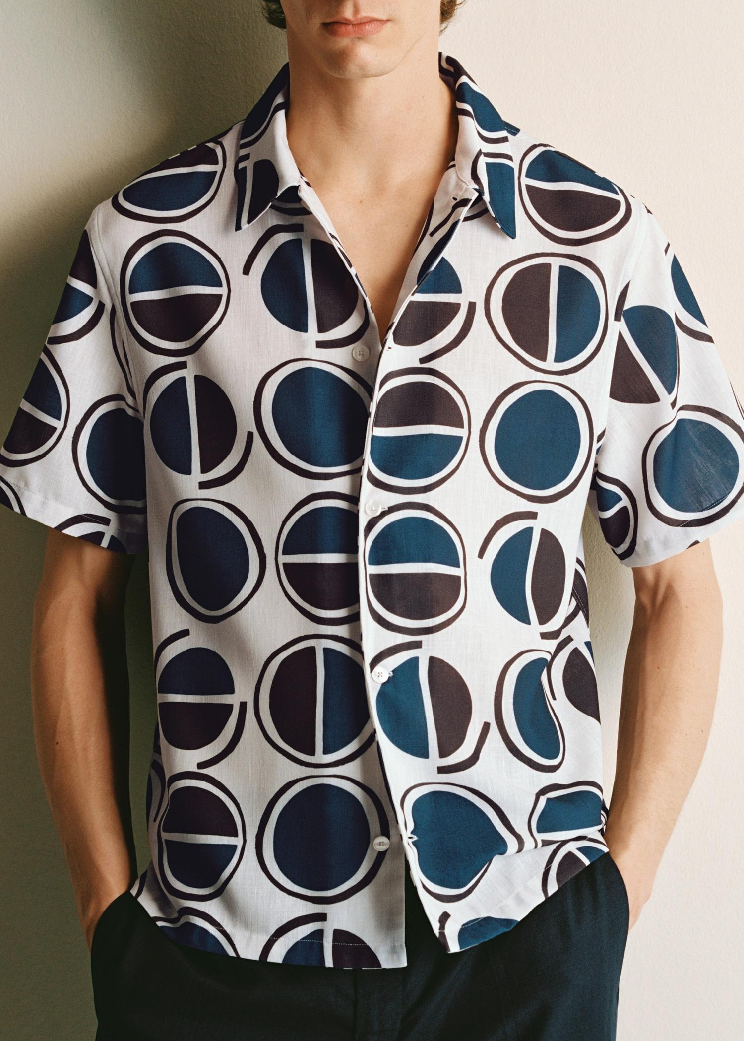 Regular-fit printed cotton shirt - Men | MANGO USA