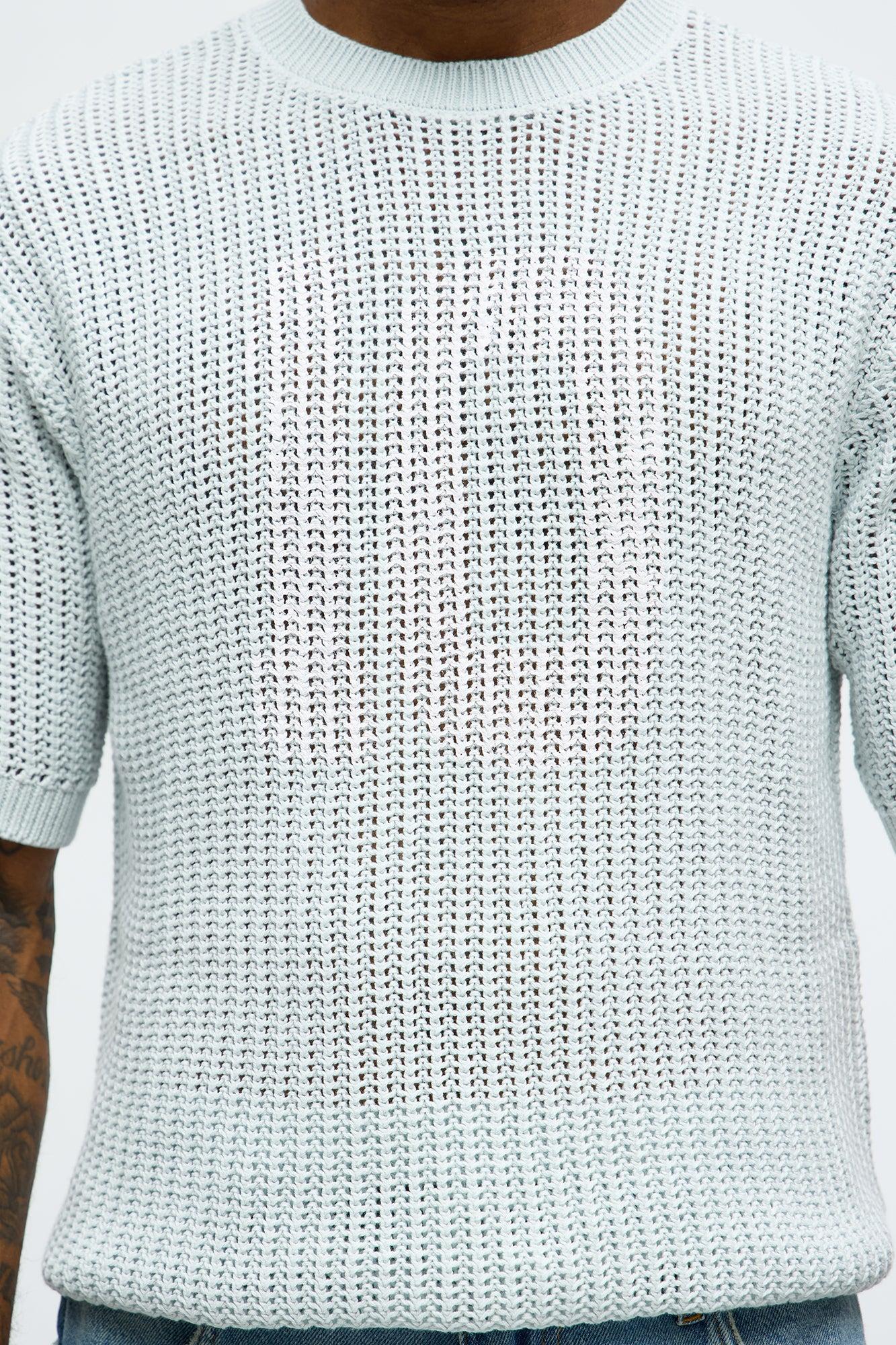 Available In Green And Light Blue. Crew Neck Short Sleeve Crochet Ribbed Cuffs Ribbed Hem Disclaimer: Due To The Printing Process A Difference In Saturation May Occur. Each Garment Is Unique. 100% Cotton Imported California Proposition 65WARNING: Cancer and Reproductive Harm - www.P65Warnings.ca.gov.
