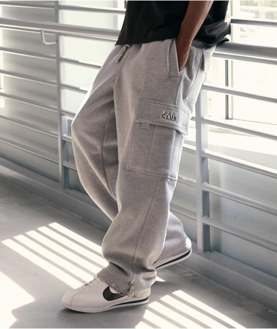 Offering essentials for everyone, Pro Club presents quality cargo sweatpants in a heather grey color using a comfy cotton blend material. Utilizing dual additional cargo pockets with hook-and-loop flap closures on top of the standard four pocket layo