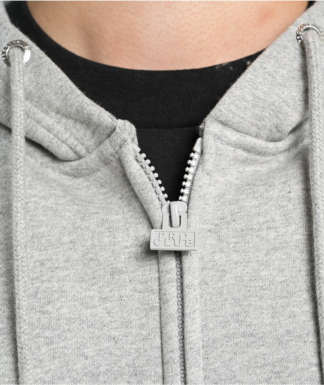 An essential athletic staple, the heavyweight hoodie from Pro Club arrives with a full zip closure and a grey cotton construction. Featuring embossed hardware for a lux accent, the warm long sleeve sweatshirt offers dual slash hand pockets for storag