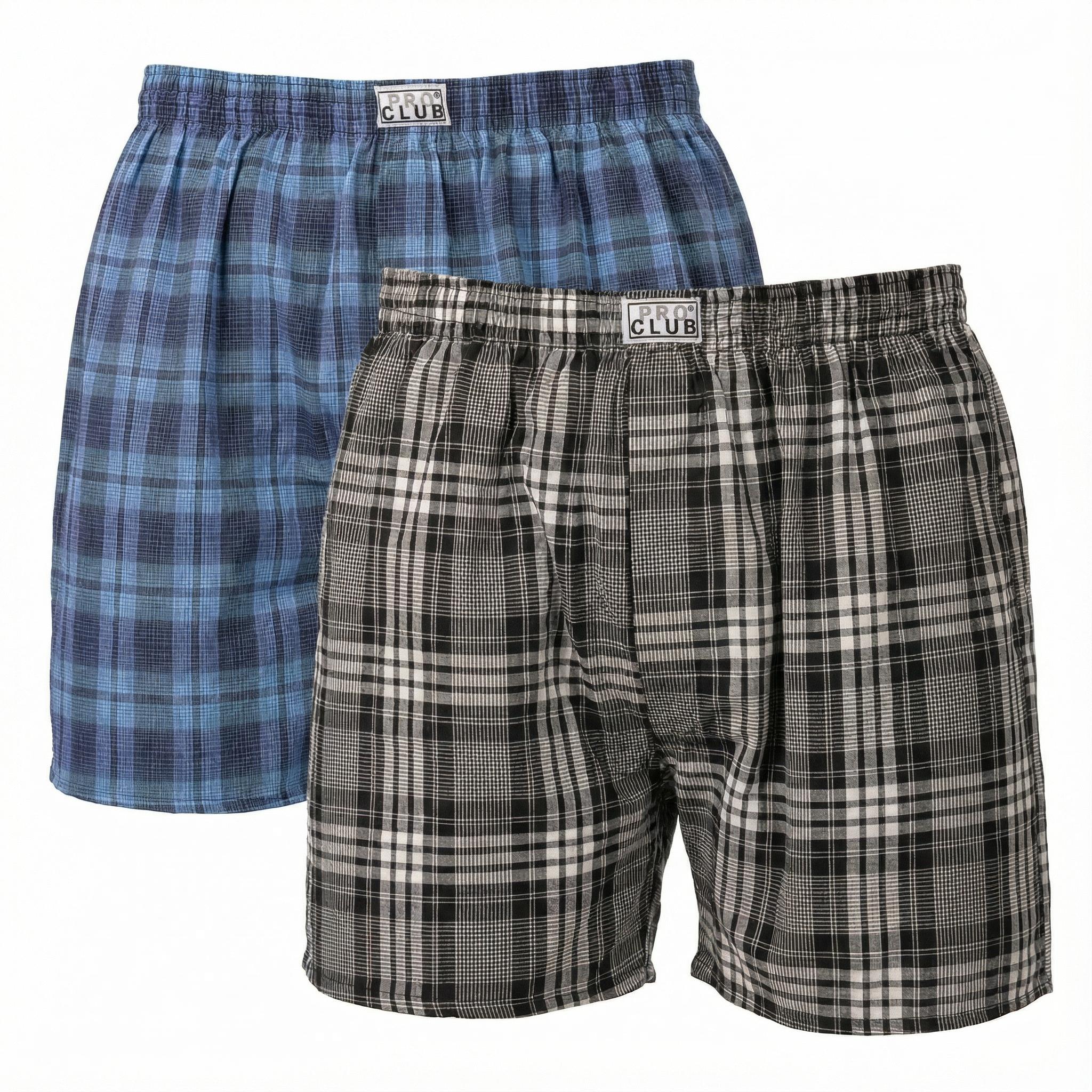 Classic boxers with functional front fly and elastic waistband designed for a comfortable everyday wear. 55% Cotton / 45% Polyester CLASSIC STYLE - Boxer short trunks underwear feature a functional front fly come in a two pack. Designed for everyday wear to keep you comfortable all day in the best classic style. PERFECT FIT - Classic-fit boxer shorts with soft-plush elastic waistband and a full cut for a better fit and added comfort. COMFORT - Medium weight high quality woven comfort fabric to keep you comfortable wash after wash. TWO PACK - Come in assorted patterns (colors may vary) QUALITY - Over 30 years of legendary Pro Club quality, keeps shape over time, wash after wash, without stretching or sagging. Famous for its casual style, premium material, quality durable construction Sizing (Waist)Small: 28-30"Medium: 32-34"Large: 36-38"X-Large: 40-42"2X-Large: 44-46"3X-Large: 48-50"4X-Large: 52-54"5X-Large: 56-58"