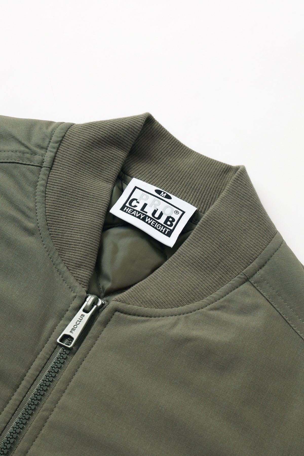 Work vest by Pro Club USA, lightweight, durable ripstop construction, two outer pockets, inner pocket, quilted polyfill interior, zipper underlay, woven label on pocket opening, Runs fitted, size up for a relaxed fit.