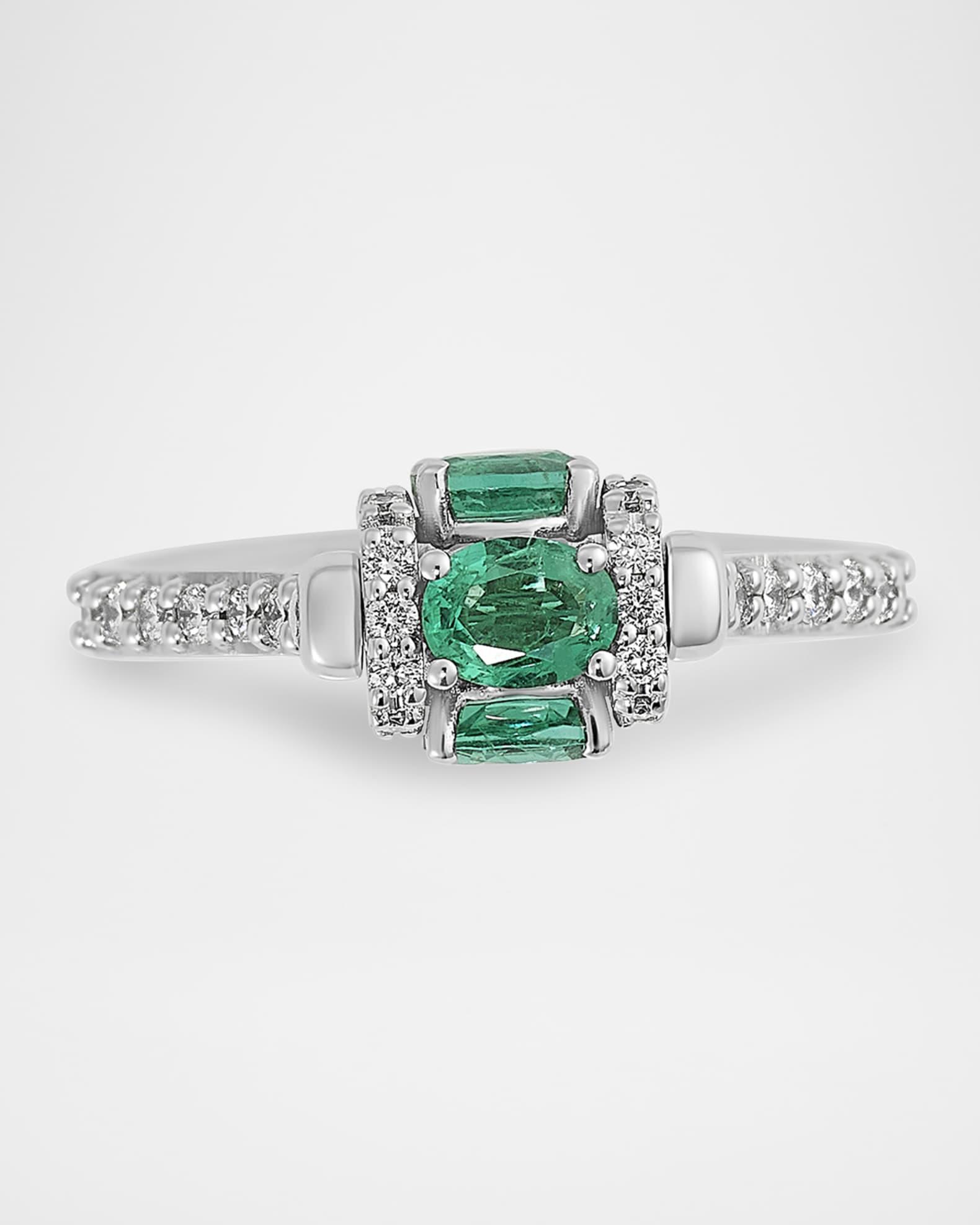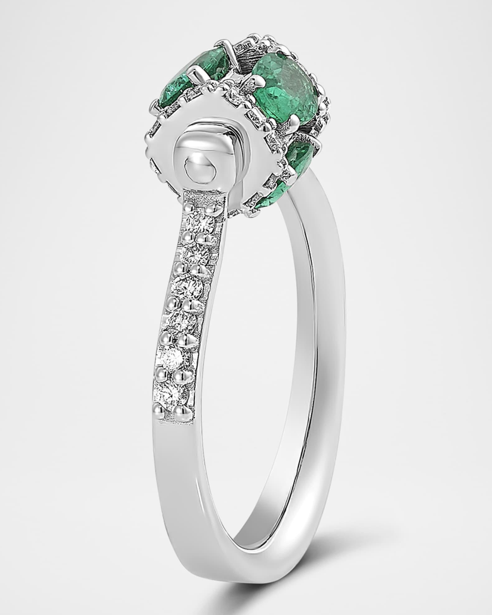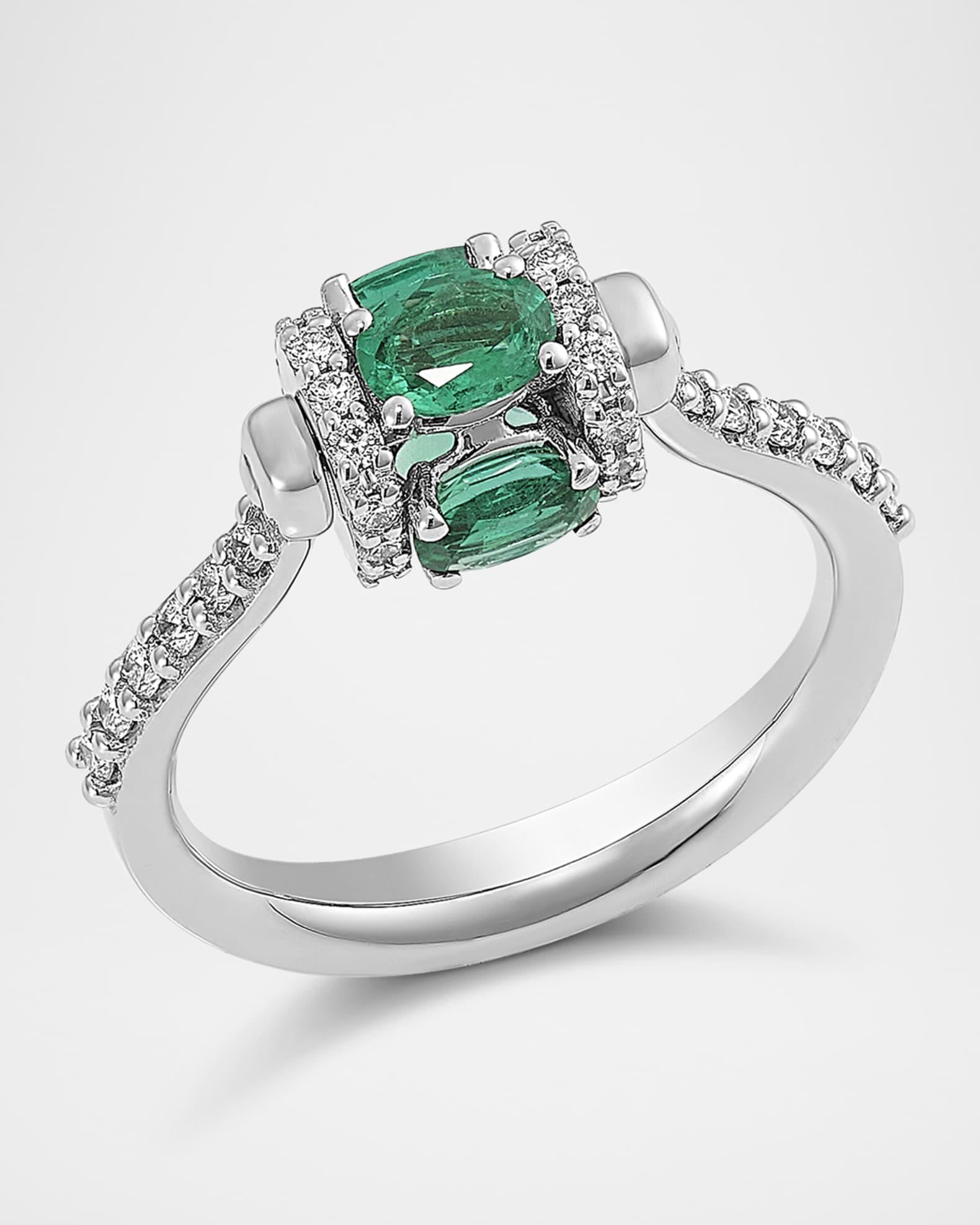 This ring from the Miseno Procida collection is designed with a rotating element at the center. The oval-shaped emeralds are paired with 36 round white diamonds. Polished 18-karat white gold Diamond total carat weight: 0.43 Emerald total carat weight: 1.06 Made in Italy