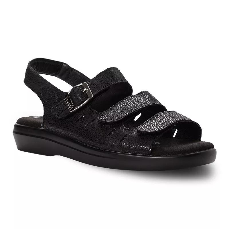 These Propet Breeze leather sandals are stylish and comfortable. These Propet Breeze leather sandals are stylish and comfortable.Click this FOOTWEAR GUIDE to find the perfect fit and more! SANDAL FEATURES Soft leather upper Cutout details Comfort Lazy foam footbed for responsive cushioningSANDAL CONSTRUCTION Leather upper Microfiber lining Manmade outsoleSANDAL DETAILS Open toe Buckle and hook-and-loop tape closure EVA footbed 1-in. heel Size: 6 N. Color: Black. Gender: female. Age Group: adult.
