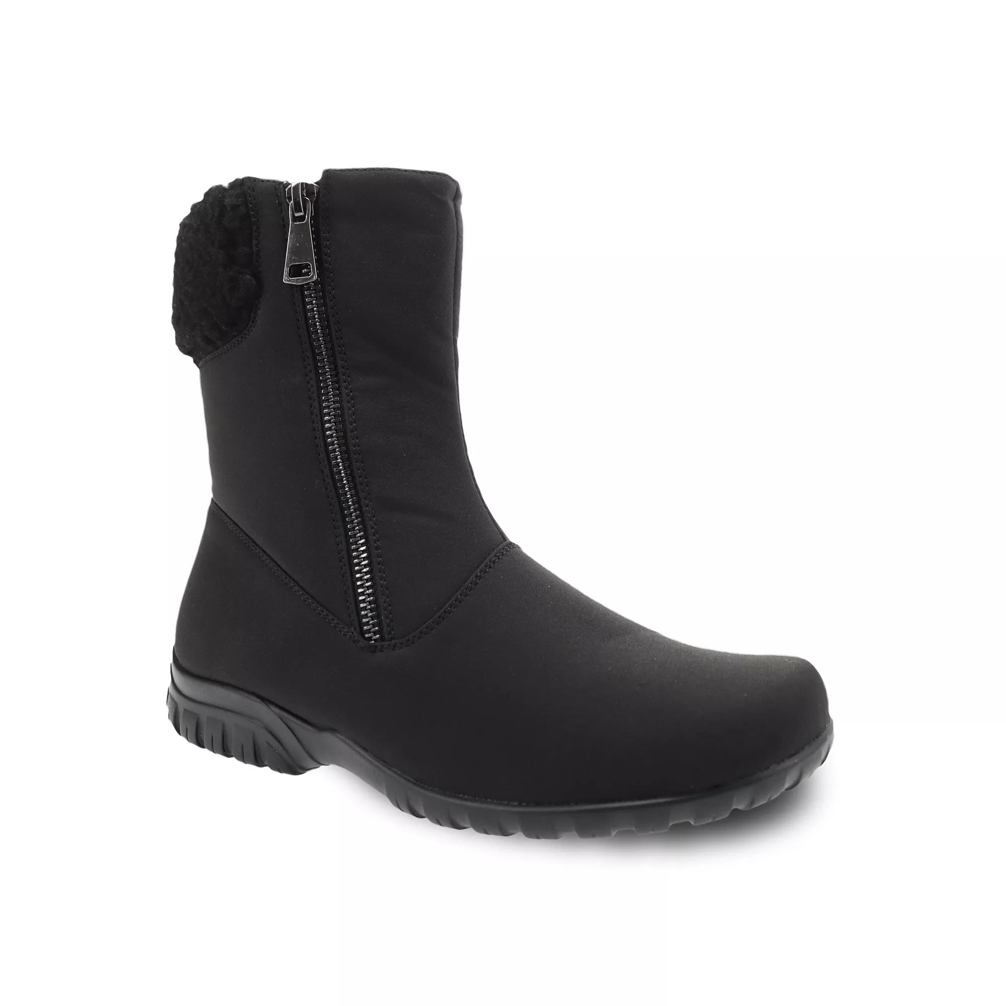 Take on chilly weather in style with these Propet Dani Mid women's water-resistant winter boots. Click this FOOTWEAR GUIDE to find the perfect fit and more! - https://www.kohls.com/feature/shoesizeguide.jsp. BOOT FEATURES: Nylon upper with Scotchgard treatment for water and salt resistance, Soft sherpa lining, Vaporex heat-retaining insole system for extra insulation and cushion, EVA spacer to customize fit, Flexible rubber sole provides responsive cushioned comfort with every step. BOOT CONSTRUCTION: Nylon upper, sherpa lining, Rubber outsole. BOOT DETAILS: Round toe, Zipper closure, Padded footbed, 1-in. platform, 7-in. shaft, 12-in. circumference. Size: 7.5 XXW. Color: Black. Gender: female. Age Group: adult. Material: SYNTHETIC.