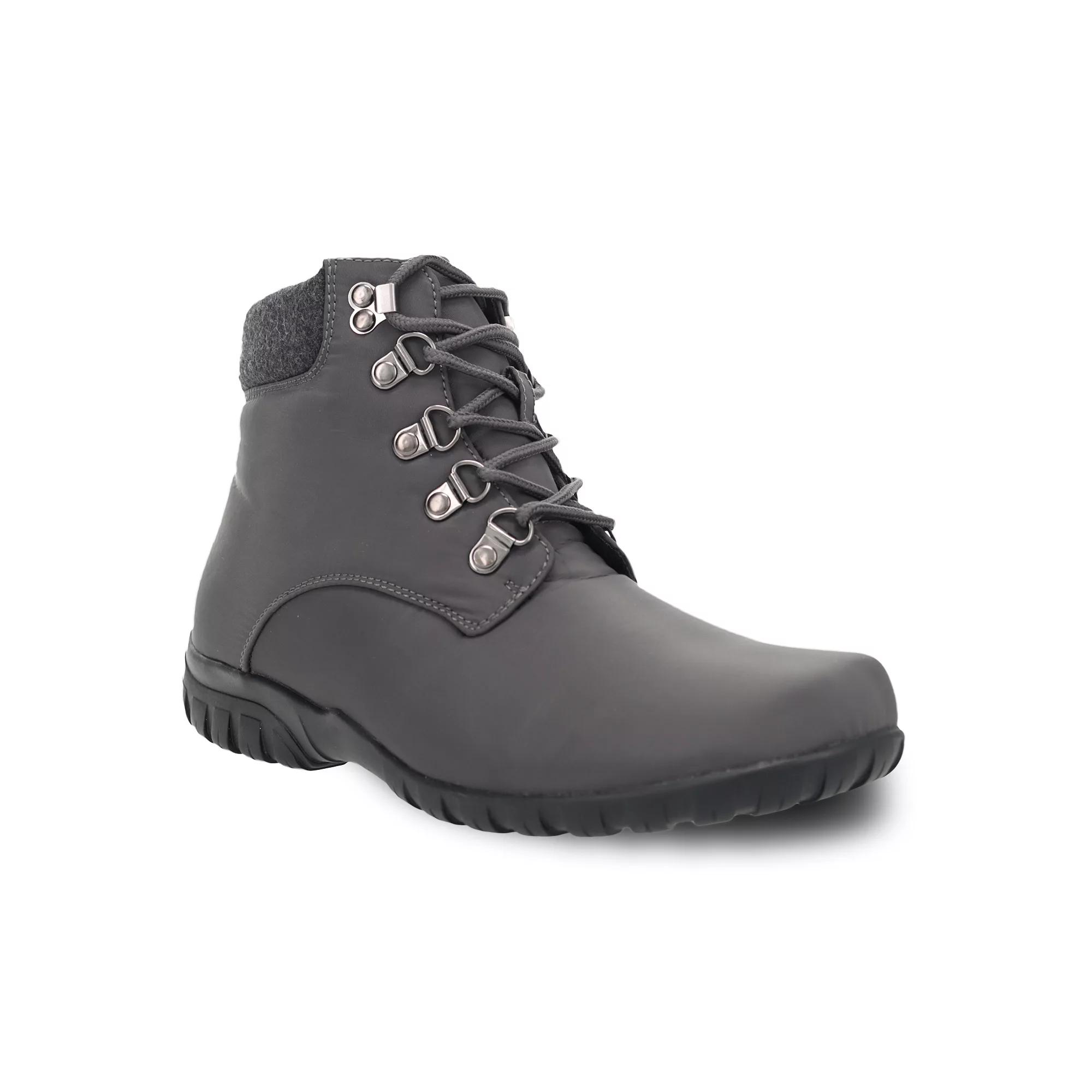 Take on the weather in style with these Propet Dani women's water-resistant ankle boots. Click this FOOTWEAR GUIDE to find the perfect fit and more! - https://www.kohls.com/feature/shoesizeguide.jsp. BOOT FEATURES: Nylon upper with Scotchgard treatment for water and salt resistance, Scotchgard treatment for water and salt resistance., Soft sherpa lining, Vaporex heat-retaining insole system for extra insulation and cushion, EVA spacer to customize fit, Flexible rubber sole provides responsive cushioned comfort with every step. BOOT CONSTRUCTION: Nylon upper, sherpa lining, Rubber outsole. BOOT DETAILS: Round toe, Lace-up and zipper closure, 1-in. platform, 4.5-in. shaft, 12-in. circumference. Size: 7.5 N. Color: Dark Gray. Gender: female. Age Group: adult. Material: SYNTHETIC.