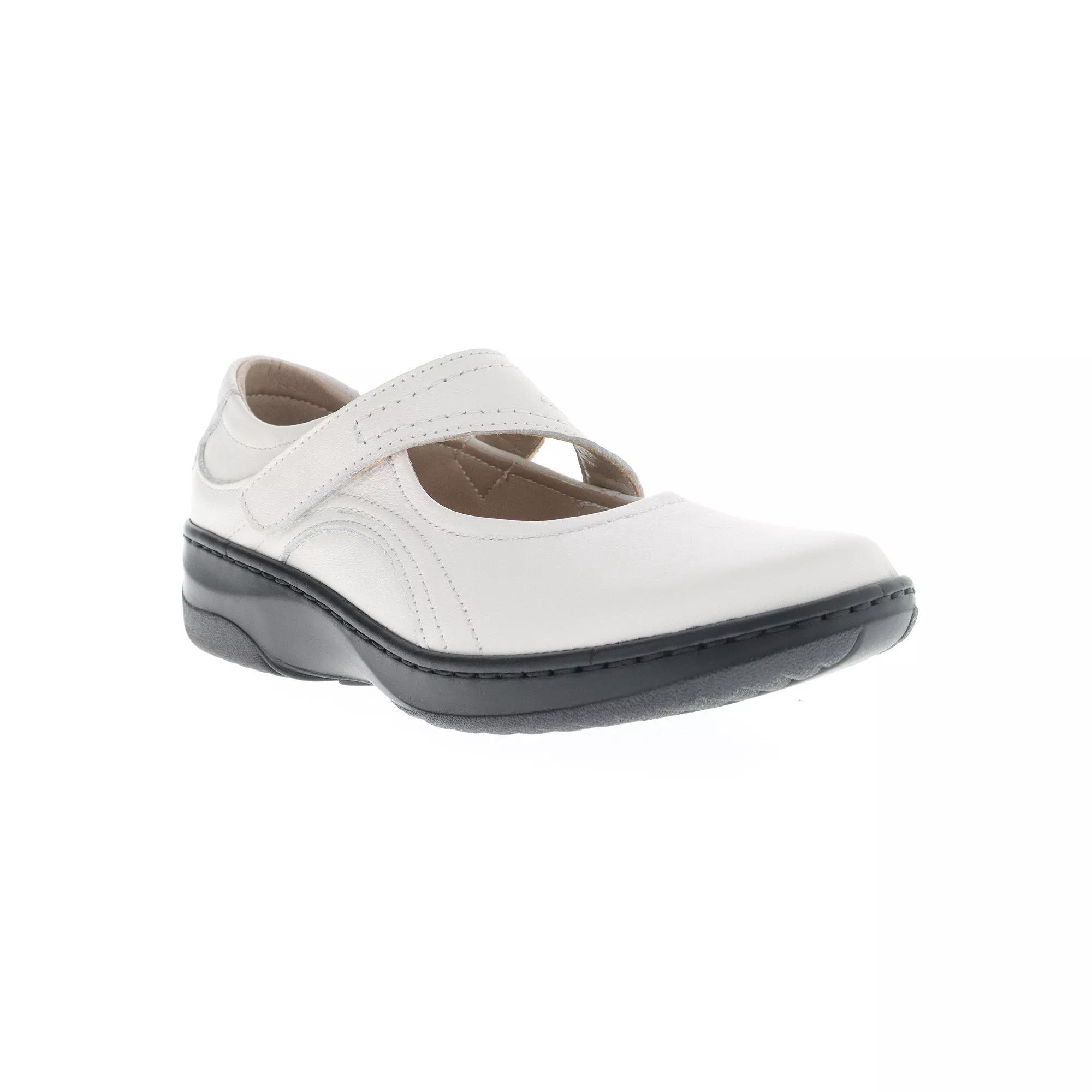 These Propet Golda women's leather mary jane shoes will complement your casual looks! Click this FOOTWEAR GUIDE to find the perfect fit and more! - https://www.kohls.com/feature/shoesizeguide.jsp. SHOE FEATURES: Extra-cushioned, removable PU insole with microfiber sock lining, Lightweight cushioning PU with rubber inserts for traction, Removable footbed. SHOE CONSTRUCTION: Leather upper, Microfiber lining, Manmade, rubber outsole. SHOE DETAILS: Plain toe, Hook-and-loop tape closure, Padded footbed, 1.5-in. heel. Size: 8 XW. Color: White Onyx. Gender: female. Age Group: adult.