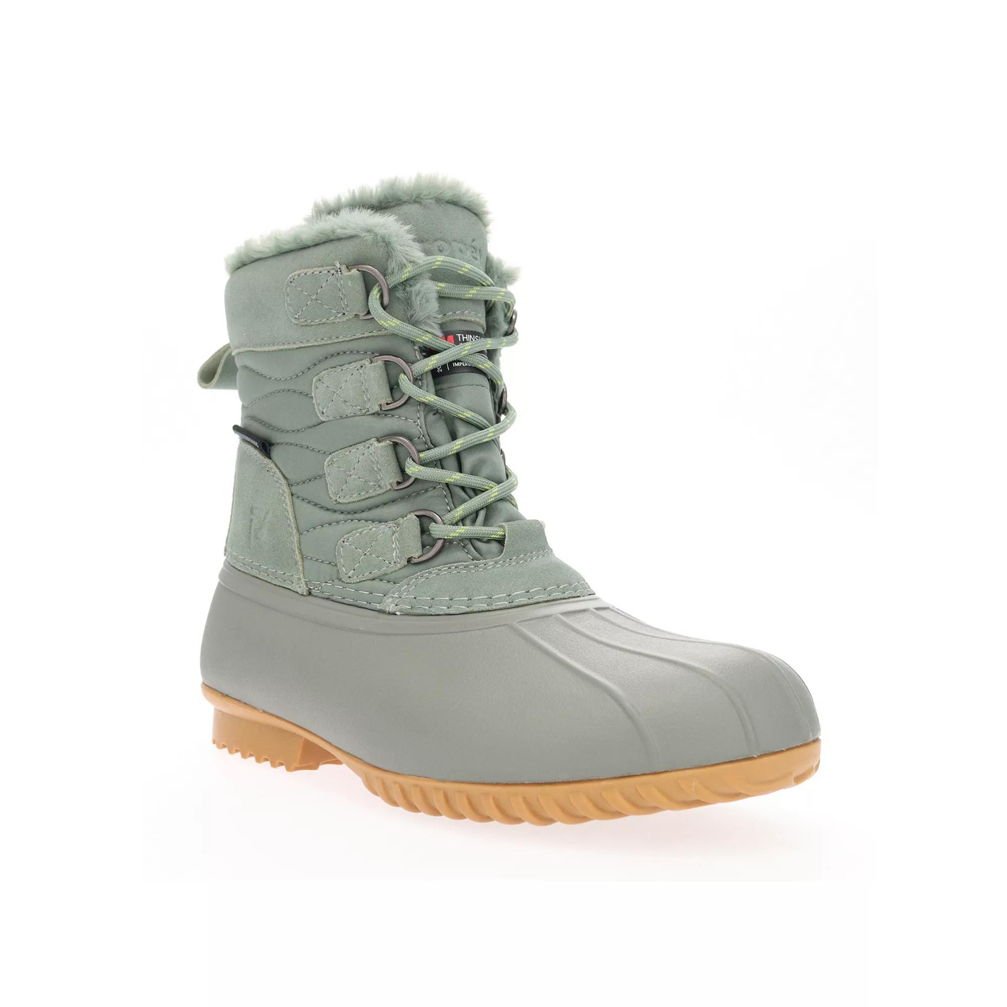 Youll fight the cold in comfort and style wearing these waterproof Ingrid winter boots from Propet.Click this FOOTWEAR GUIDE to find the perfect fit and more! Youll fight the cold in comfort and style wearing these waterproof Ingrid winter boots from Propet. Click this FOOTWEAR GUIDE to find the perfect fit and more! BOOT FEATURES Waterproof design ensures feet stay dry Scotchgard treated Thinsulate insulation Vaporex heat-retaining insole system for extra insulation and cushion Rubber outsole with wave tread pattern designed for positive traction on wet and dry surfacesBOOT CONSTRUCTION Nylon, suede upper Faux fur lining Rubber outsole EVA midsoleBOOT DETAILS Duck toe Lace-up closure Padded footbed 1-in. platform 7-in. shaft 12-in. circumference Size: 12 XW. Color: Green. Gender: female. Age Group: adult.