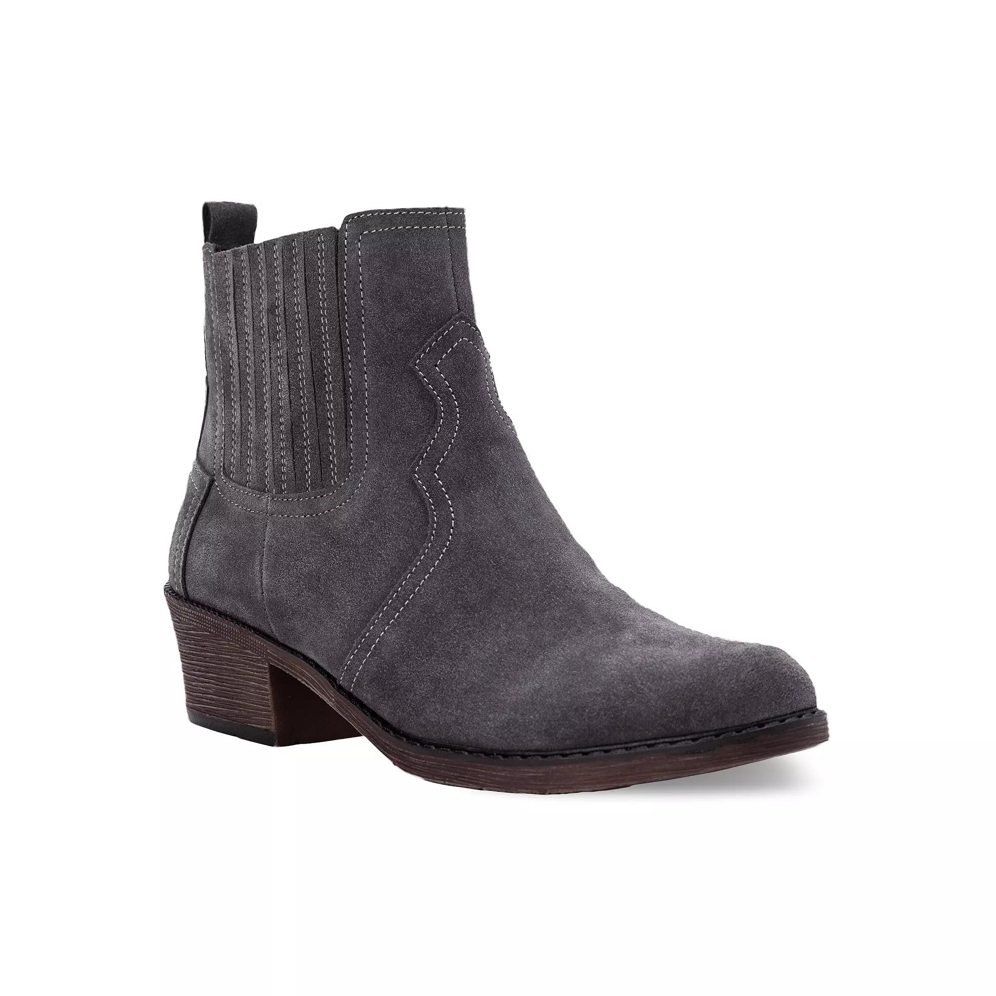 Add a little western flair to your footwear with these Propet Reese suede ankle boots.Click this FOOTWEAR GUIDE to find the perfect fit and more! Add a little western flair to your footwear with these Propet Reese suede ankle boots.Click this FOOTWEAR GUIDE to find the perfect fit and more! BOOT FEATURES Suede upper with traditional western styling and hidden side goring for a comfortable fit Removable Footbed Sturdy, stable and long lasting outsoleBOOT CONSTRUCTION Suede upper Mesh lining Rubber midsole TPR outsoleBOOT DETAILS Round toe Zipper closure 1.75-in. heel 4.5-in. shaft 11.5-in. circumference Size: 9.5 N. Color: Grey. Gender: female. Age Group: adult.