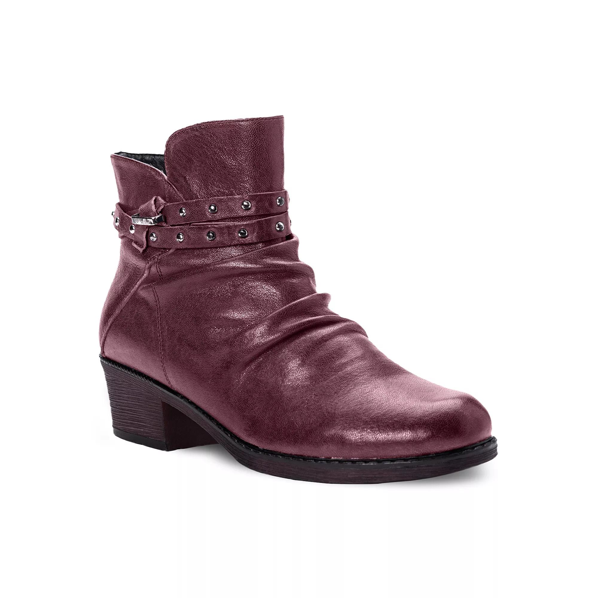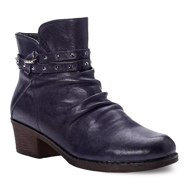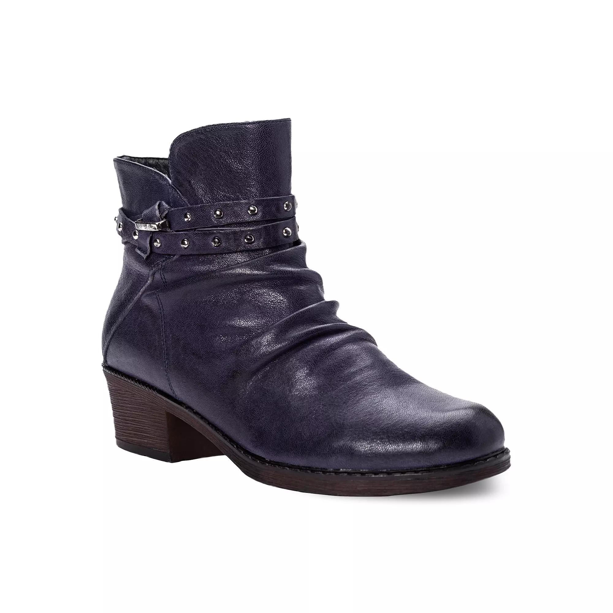 Step out in style in these Propet Roxie ankle boots. Click this FOOTWEAR GUIDE to find the perfect fit and more! - https://www.kohls.com/feature/shoesizeguide.jsp. SHOE FEATURES: Ruched upper with stud embellished straps, Inside zipper, Long lasting outsole is sturdy and stable, Removable footbed. SHOE CONSTRUCTION: Leather upper, Mesh lining, Rubber midsole, TPR outsole. SHOE DETAILS: Round toe, Zipper closure, Padded footbed, Spot clean, 11.5-in. shaft circumference, 4.5-in. shaft height, 1.75-in. heel height. Size: 6 Wide. Color: Navy. Gender: female. Age Group: adult.