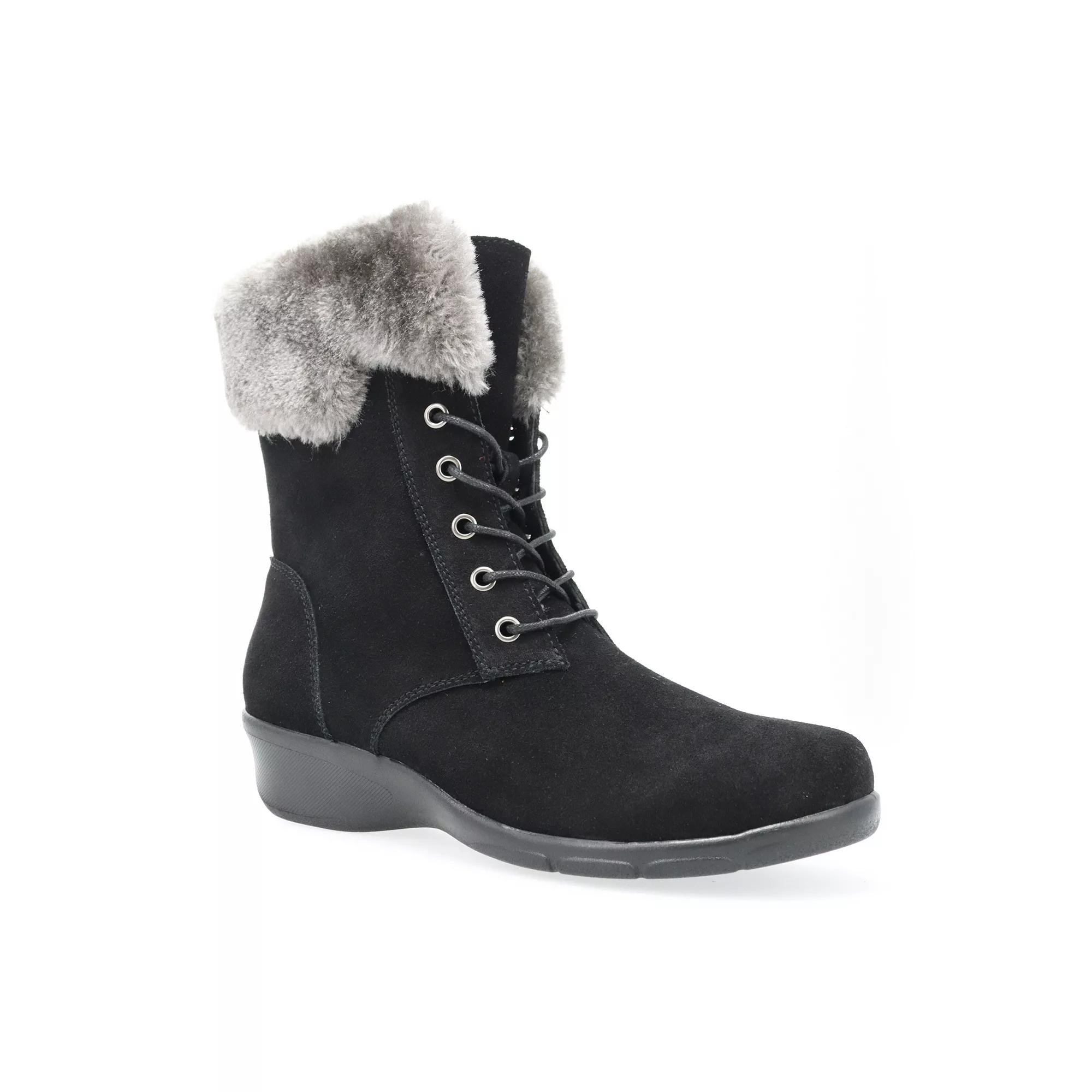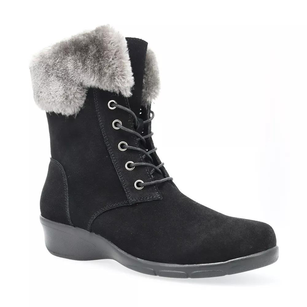 You'll be nice and cozy in these Propet Winslow women's suede winter boots. Click this FOOTWEAR GUIDE to find the perfect fit and more! - https://www.kohls.com/feature/shoesizeguide.jsp. SHOE FEATURES: Soft suede upper with lace and inside zip., Cozy faux fur lining and collar, Scotchgard's Protective treatment means these styles are water repellent and resists stains, PU outsole absorbs shock to reduce fatigue with rubber tread inserts for traction, Removable footbed. SHOE CONSTRUCTION: Suede, faux fur upper, Faux fur lining, Manmade outsole. SHOE DETAILS: Round toe, Zipper & lace-up closure, Foam footbed, 1.75-in. heel, 0.5-in. platform, 7-in. shaft, 12-in. circumference, Spot clean, Imported. Size: 6 XW. Color: Black. Gender: female. Age Group: adult.