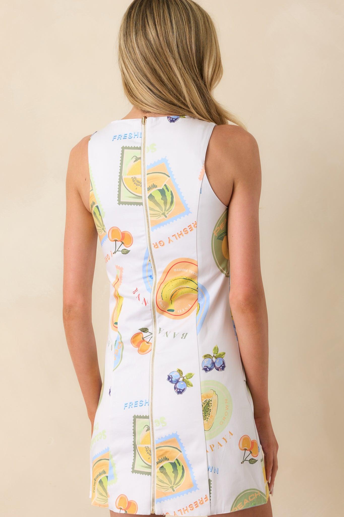 The Prosperina Reversible Cotton Heirloom Orchard Print Astrid Mini Dress is for the days that feel a little bit charmed. Lighthearted and adaptable, it’s a playful companion to whatever unfolds—planned or not. This reversible mini dress features an exclusive Prosperina multicolor patchwork print on one side, blue sky and ivory stripe print on the other, round neckline, sleeveless, structured panel design, and functional back zipper.