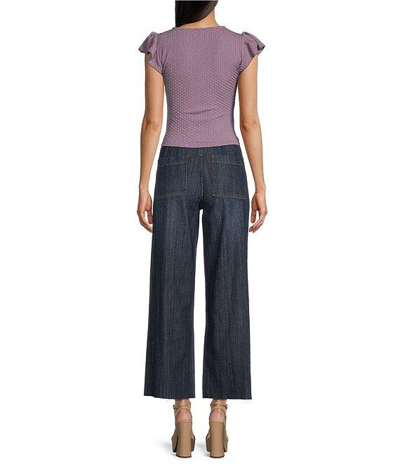 From Prosperity Denim, these jeans feature: High rise Front button/zip fly closure Wide legs Raw hem Approx. 29" inseam Cotton Machine wash/tumble dry Imported.