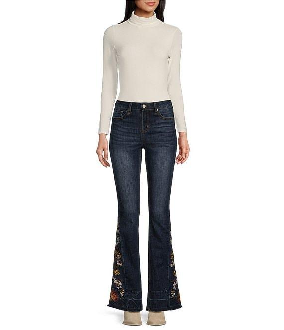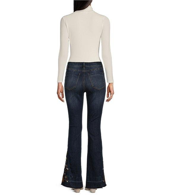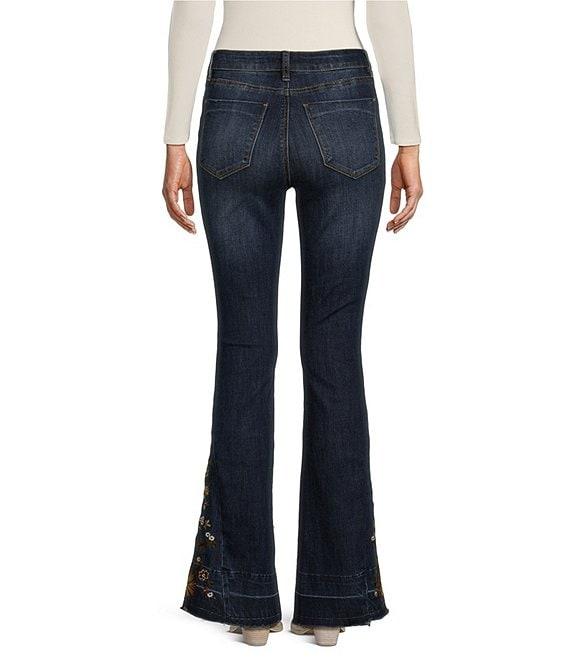 Prosperity Denim High Rise Embroidered Released Hem Flare Leg Jeans