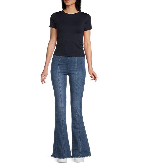 Prosperity Denim Pull-On Frayed Hem Flared Jeans