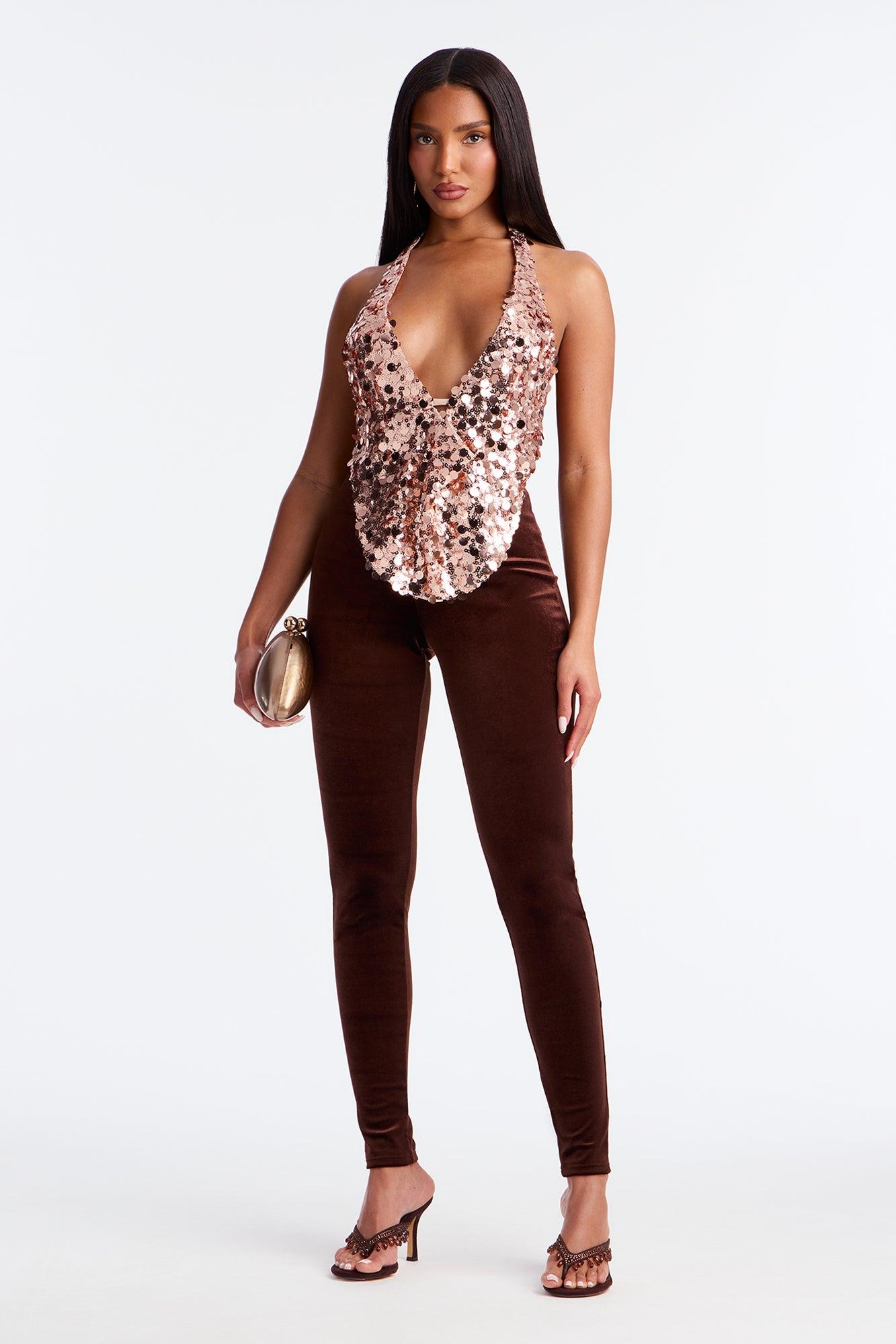 Prudence Sequin Open Back Halter Top - Champagne Female