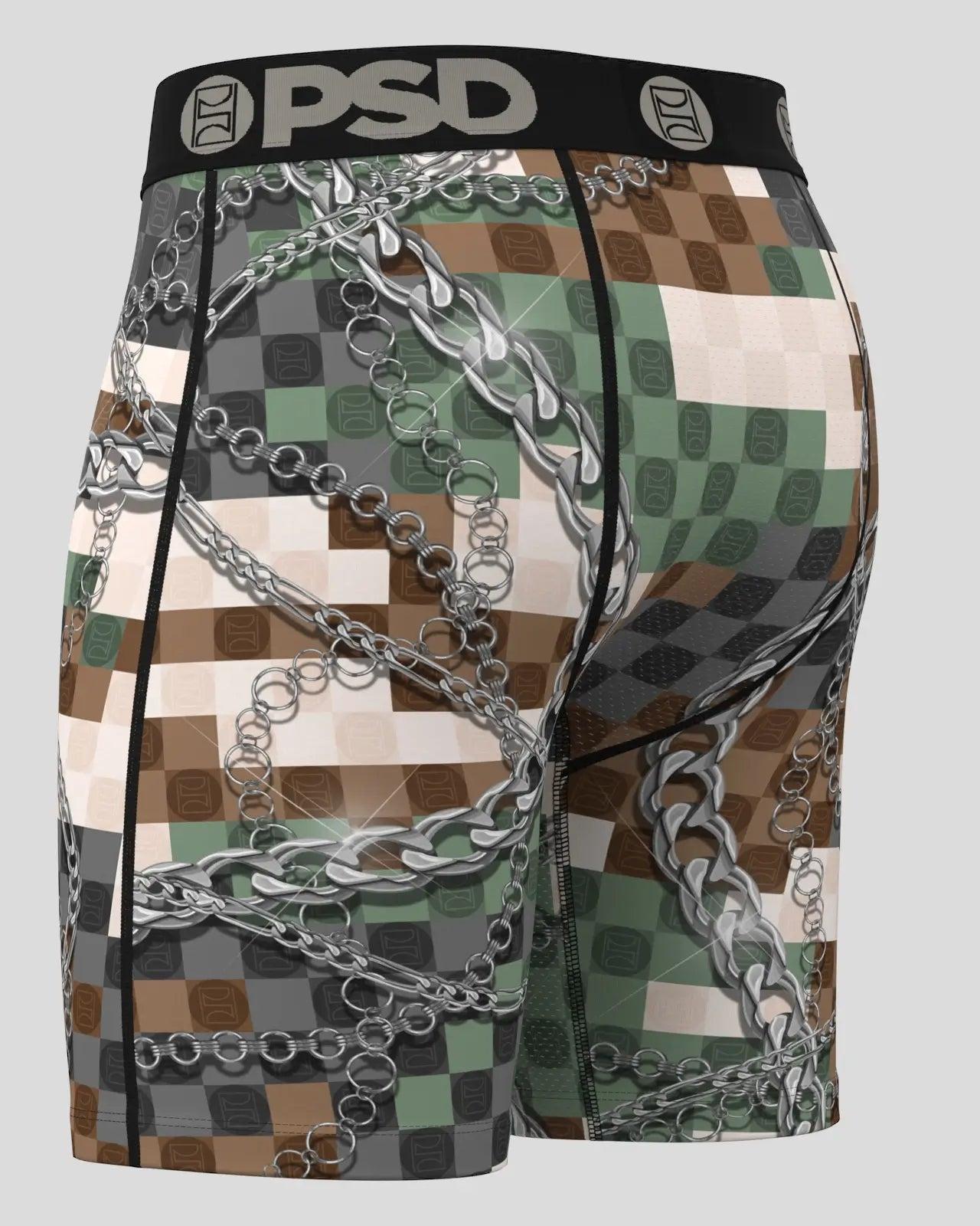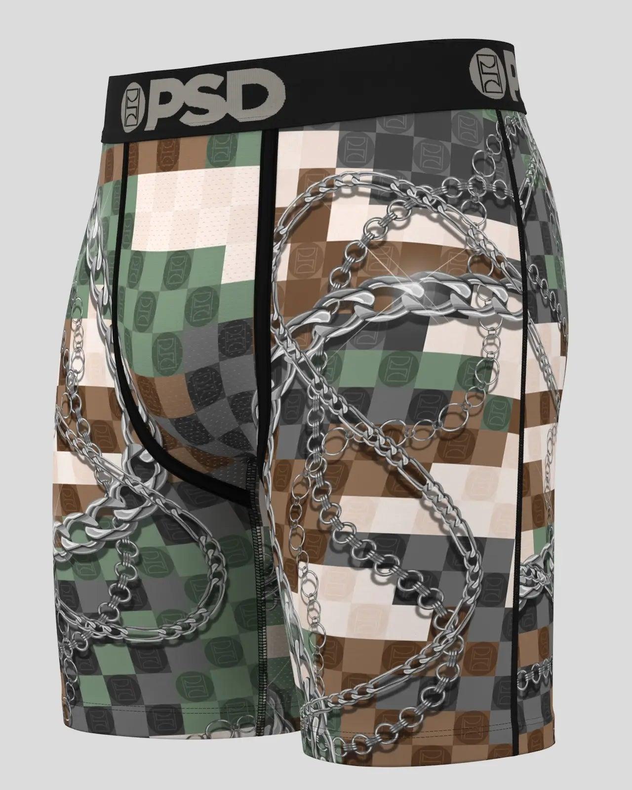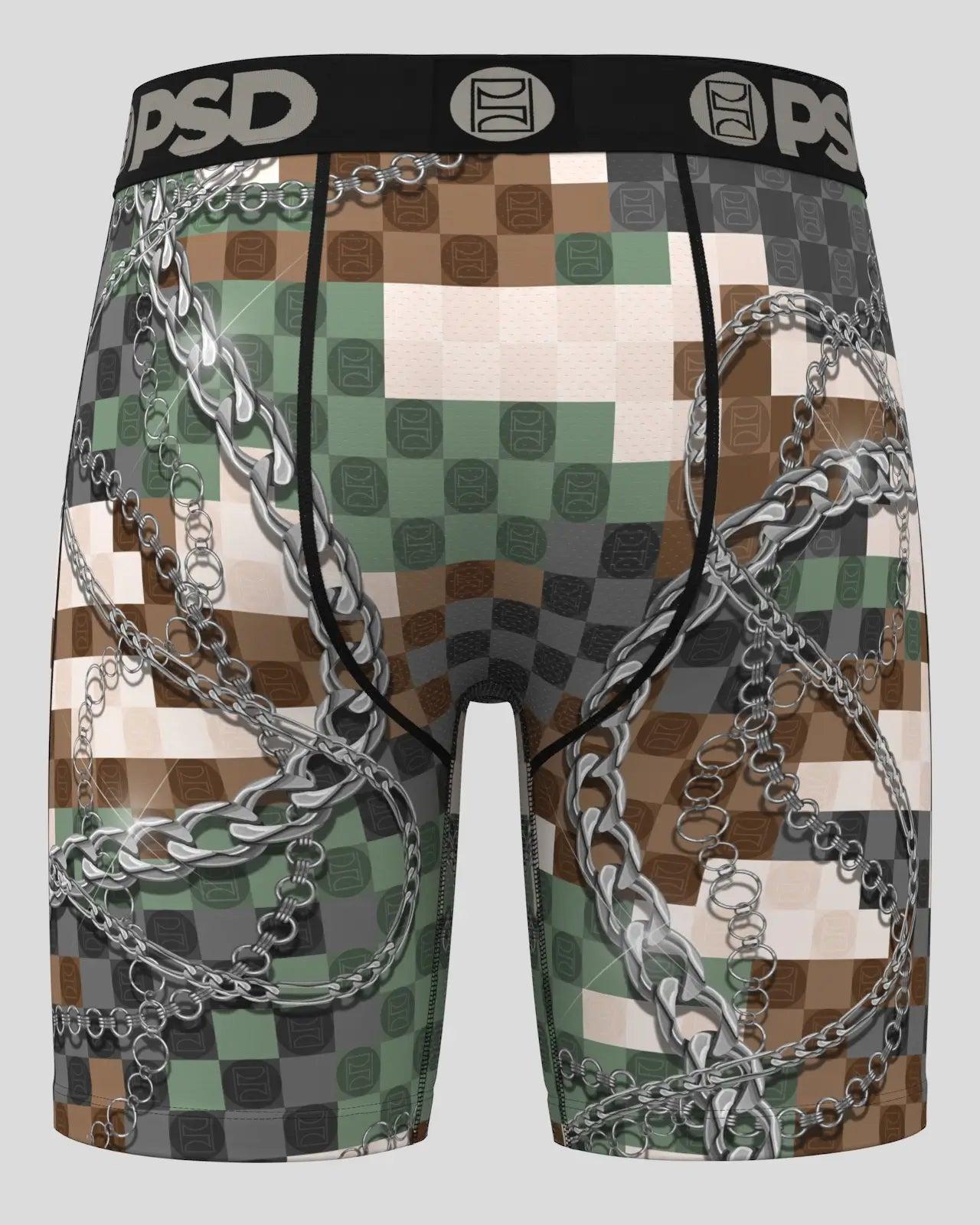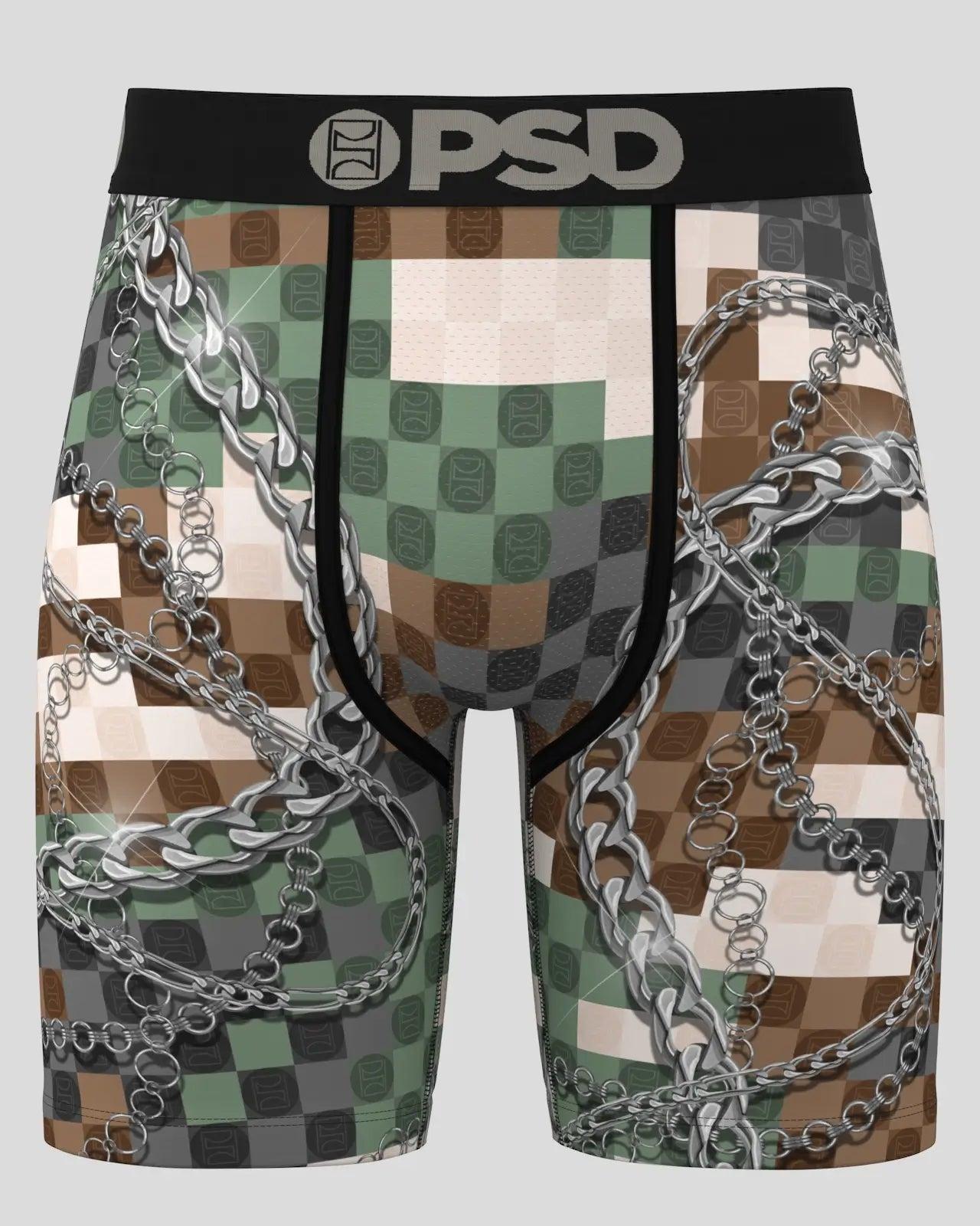 Hey recruit, join the ranks in our newest pair. The PSD Army briefs feature a pixelated camo print with chains and include our ultra-comfortable Signature WaistBand, a breathable MicroMesh pouch, and four-way stretch. The PSD 7” Standard Length Briefs won't roll or ride and were built for everything, from everyday wear to your toughest workouts.