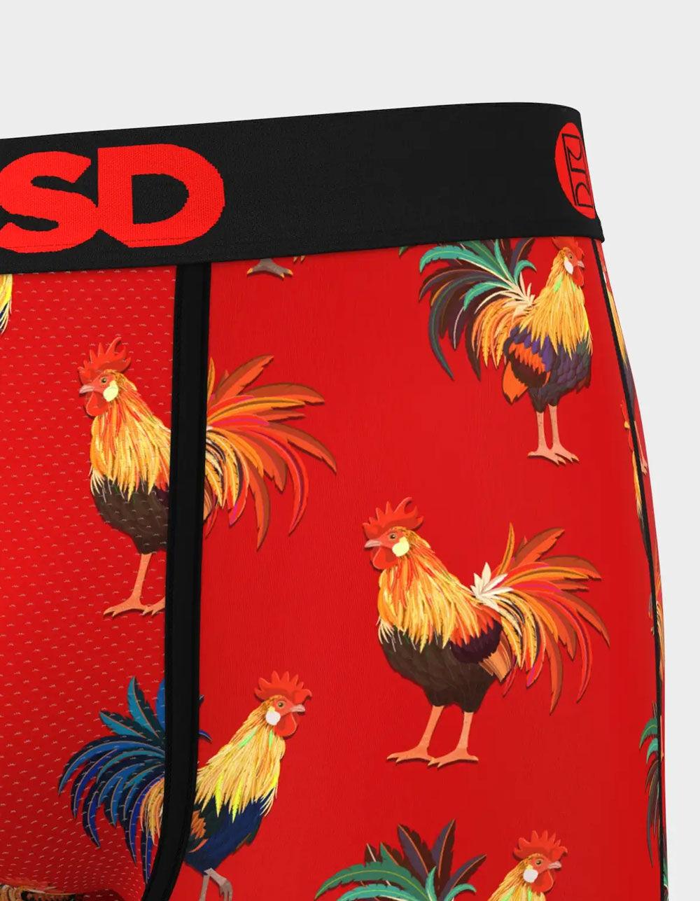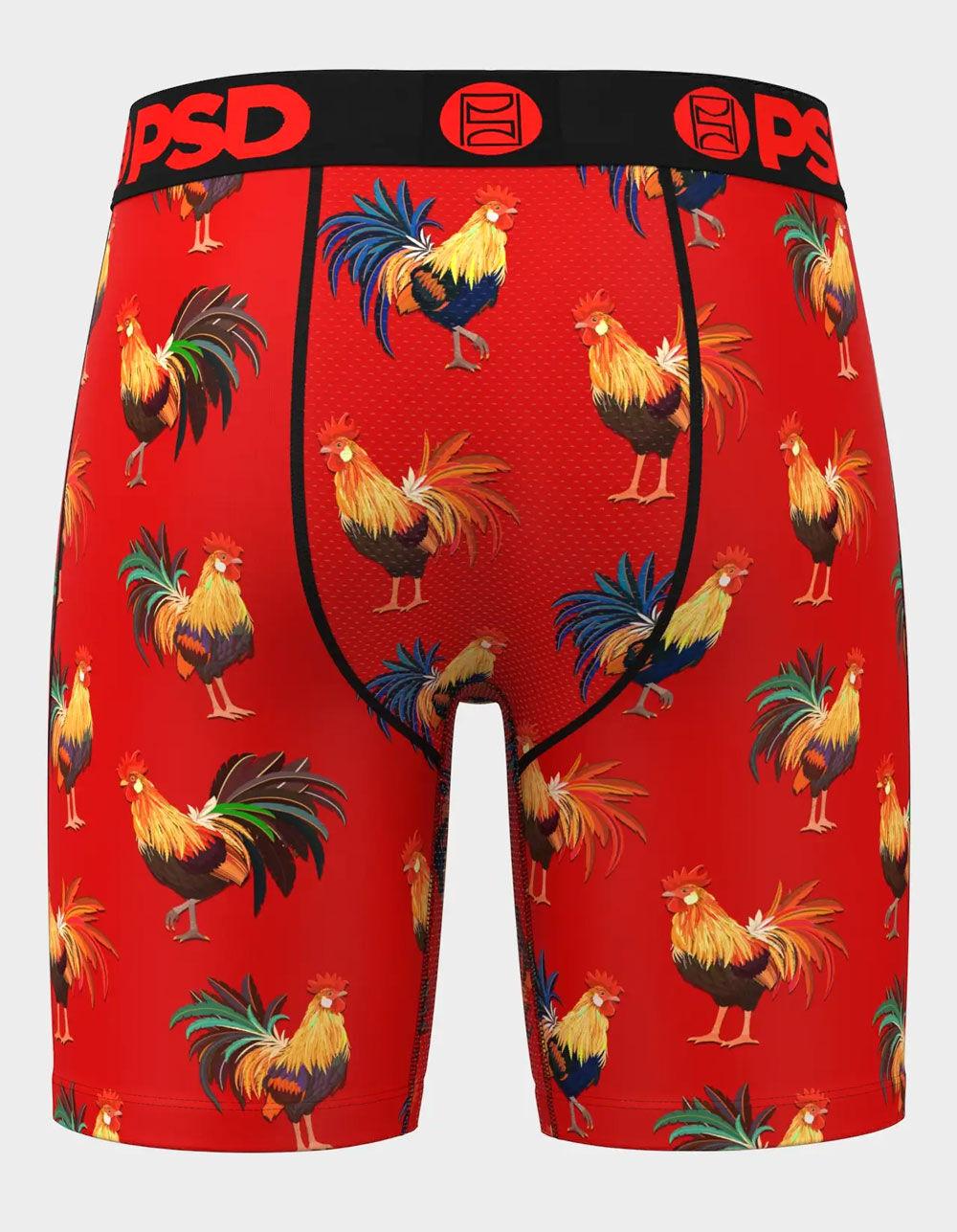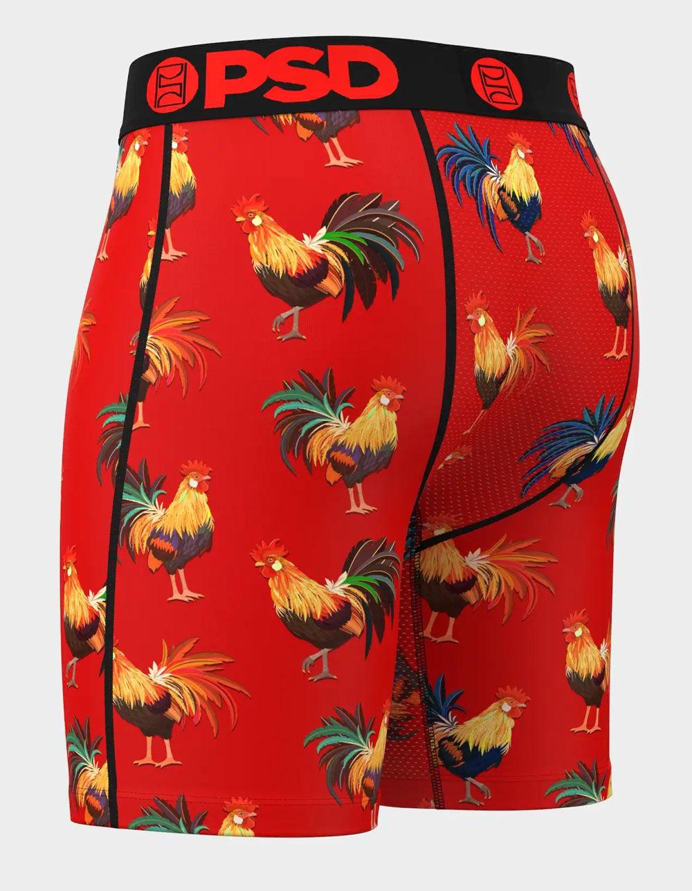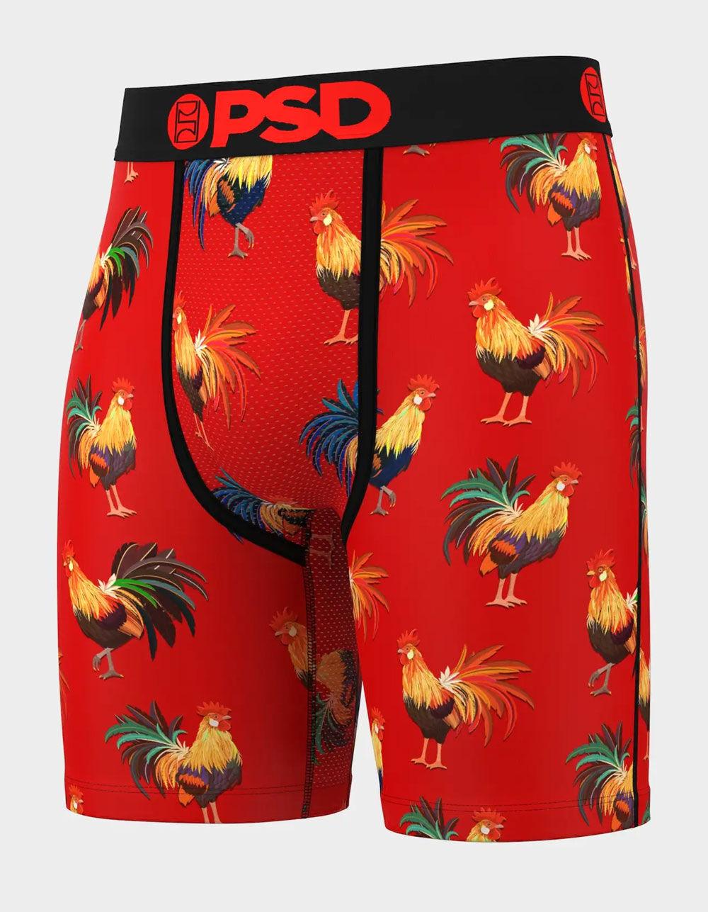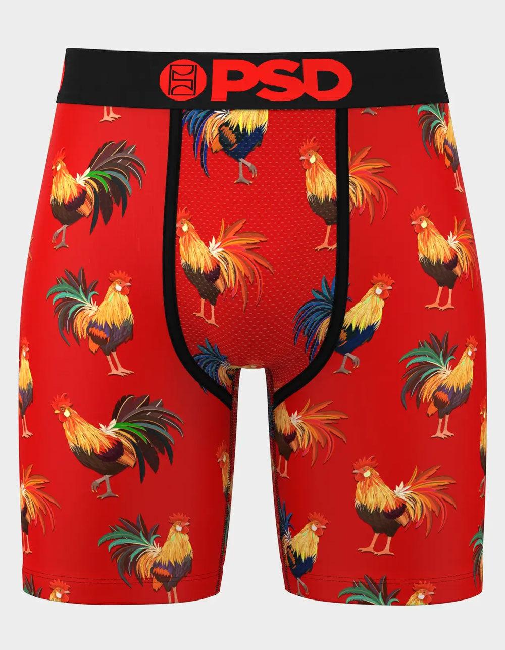 PSD Cockly Flock Boxer Briefs. Breathable sealed MicroMesh pouch. Four-way stretch. Flatlock seams for extra durability. Branded microfiber blend band. 7" inseam. 88% Polyester 12% Elastane. Machine wash. Imported. Size Chart: S: 28-30 M: 32-34 L: 36-38 XL: 40-42 XXL: 44-48